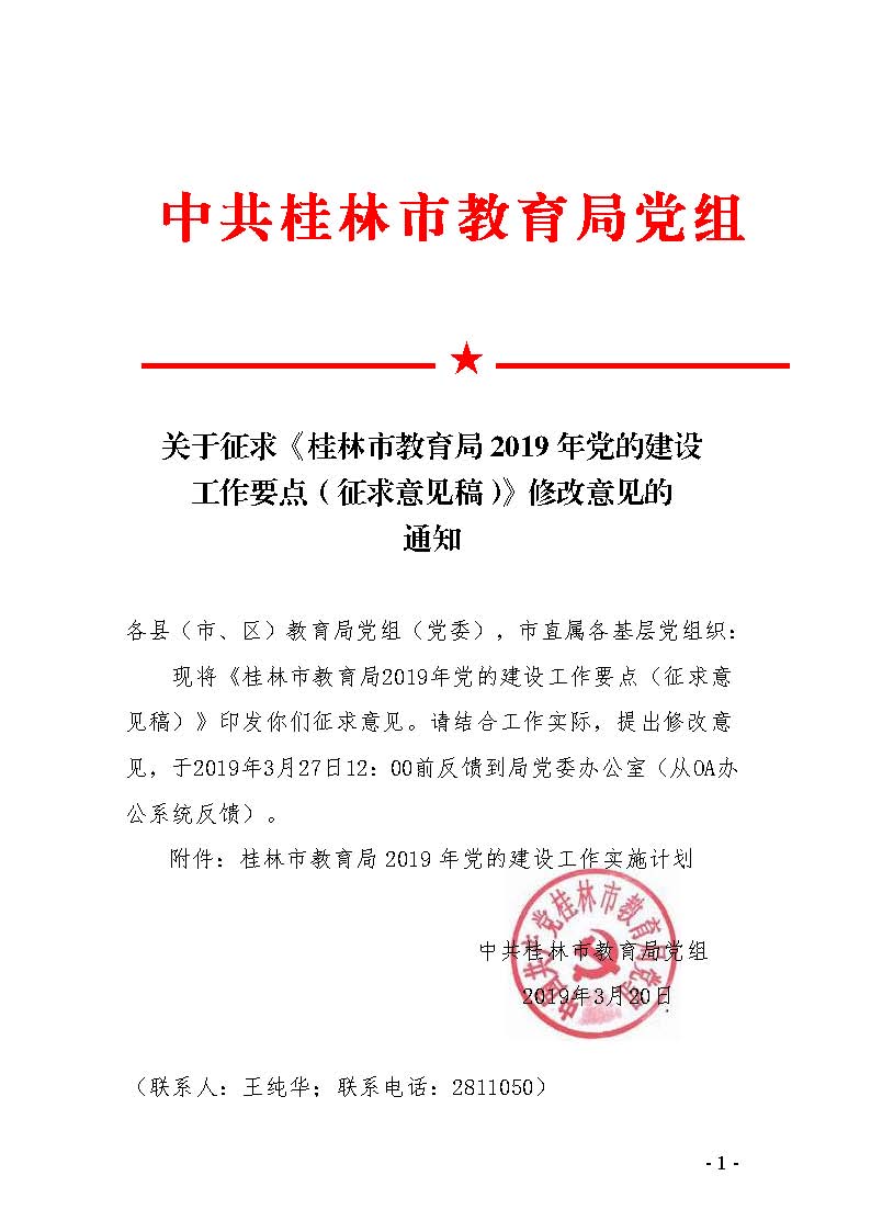 关于征求《桂林市教育局2019年党的建设工作要点(征求意见稿)》修改意见的通知_页面_01