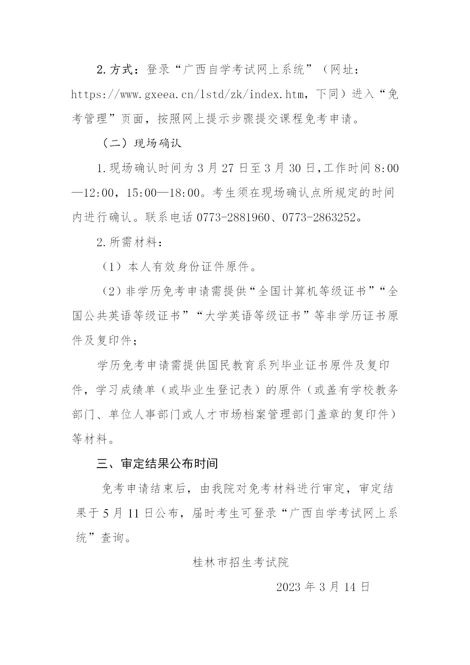 桂林市2023年上半年高等教育自学考试课程免考申请的通知