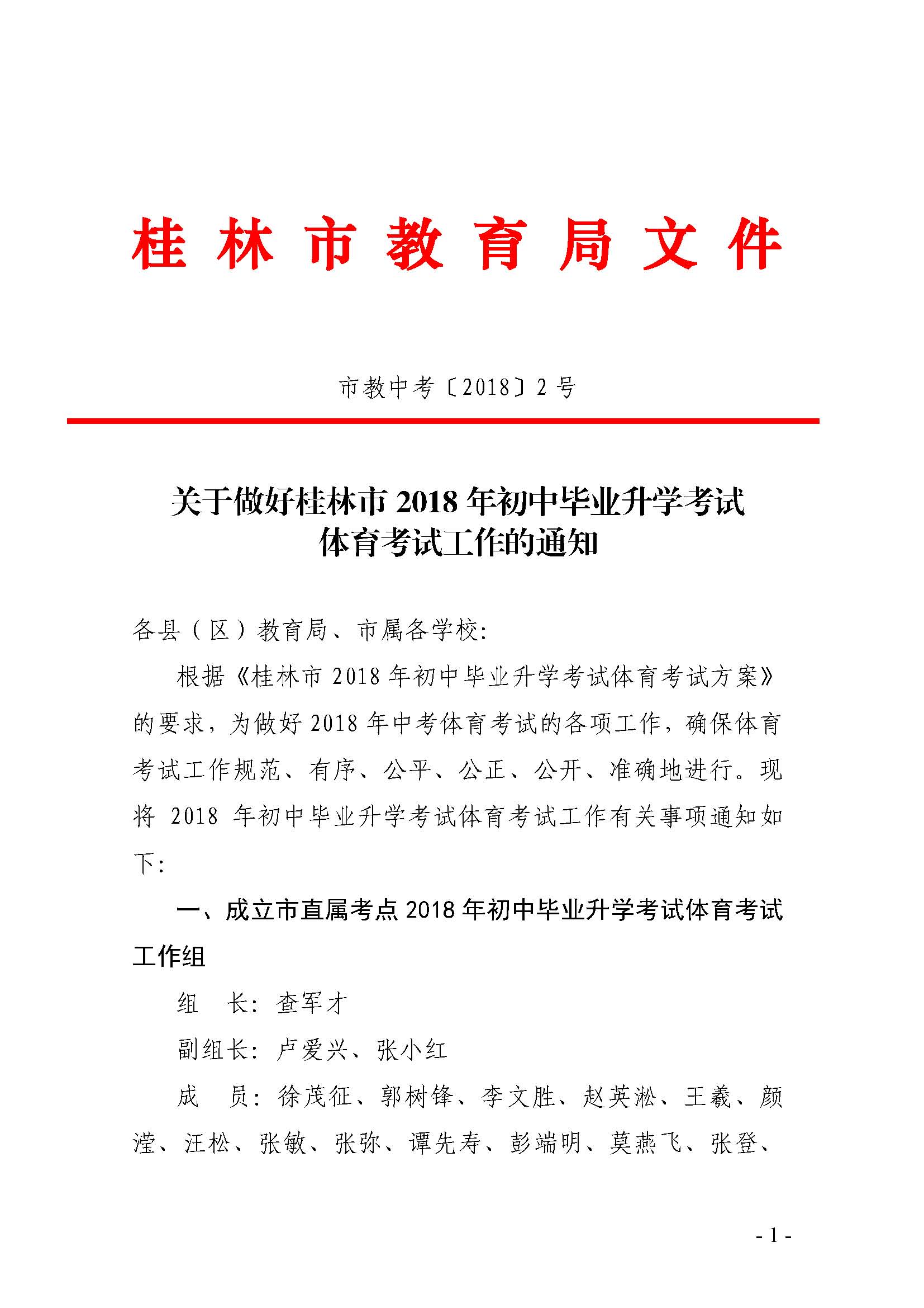 关于做好桂林市2018年初中毕业升学考试体育考试工作的通知_页面_01