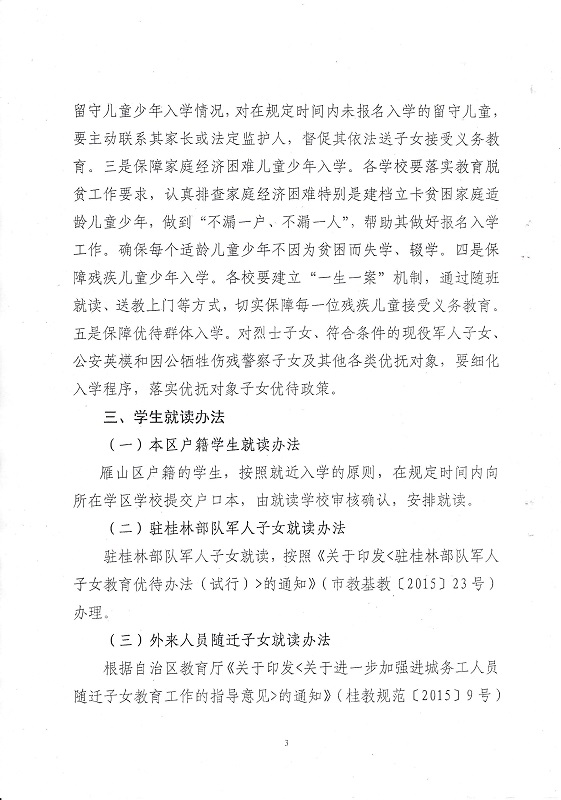 雁山区教育局关于做好2019年义务教育招生工作的通知