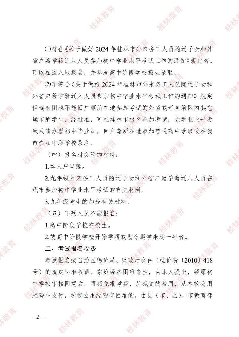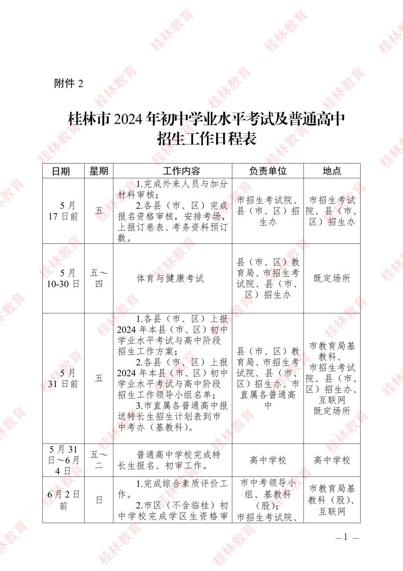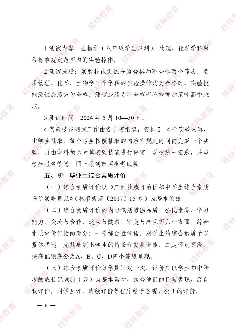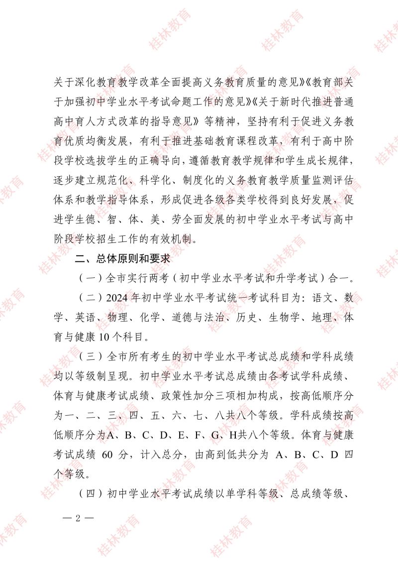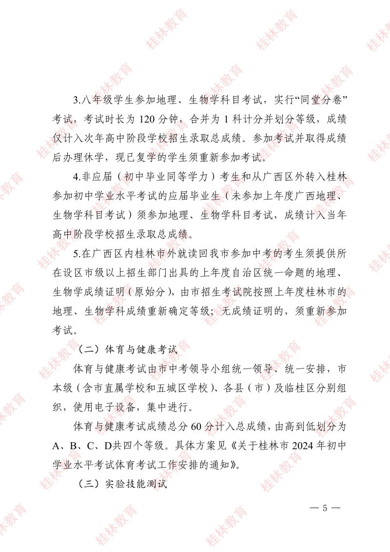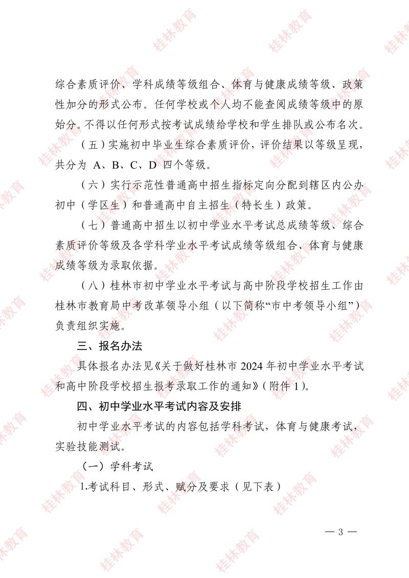 市教中考〔2024〕3 号 关于做好桂林市2024年初中学业水平考试与高中阶段学校招生工作的通知