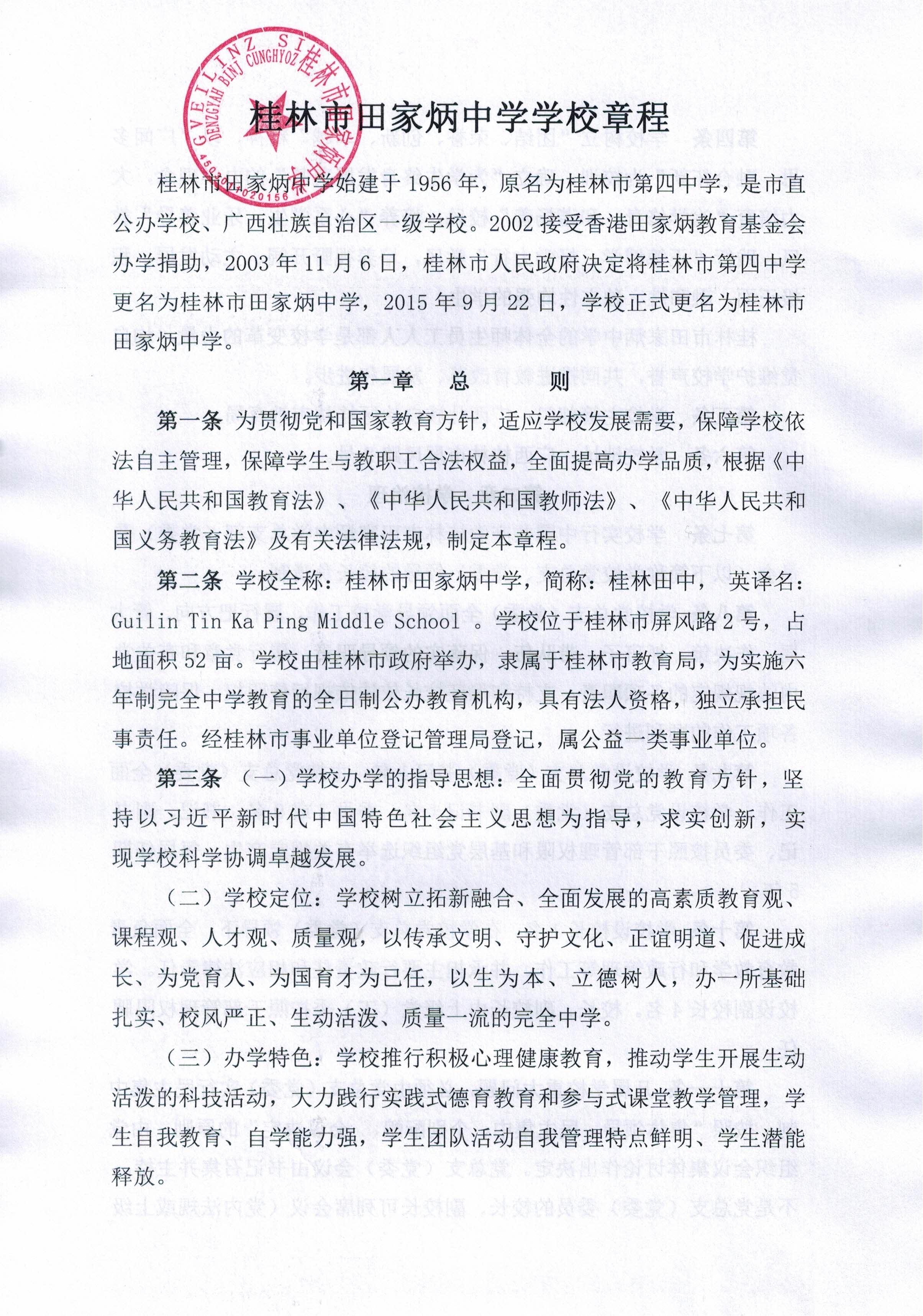 桂林市田家炳中学学校章程