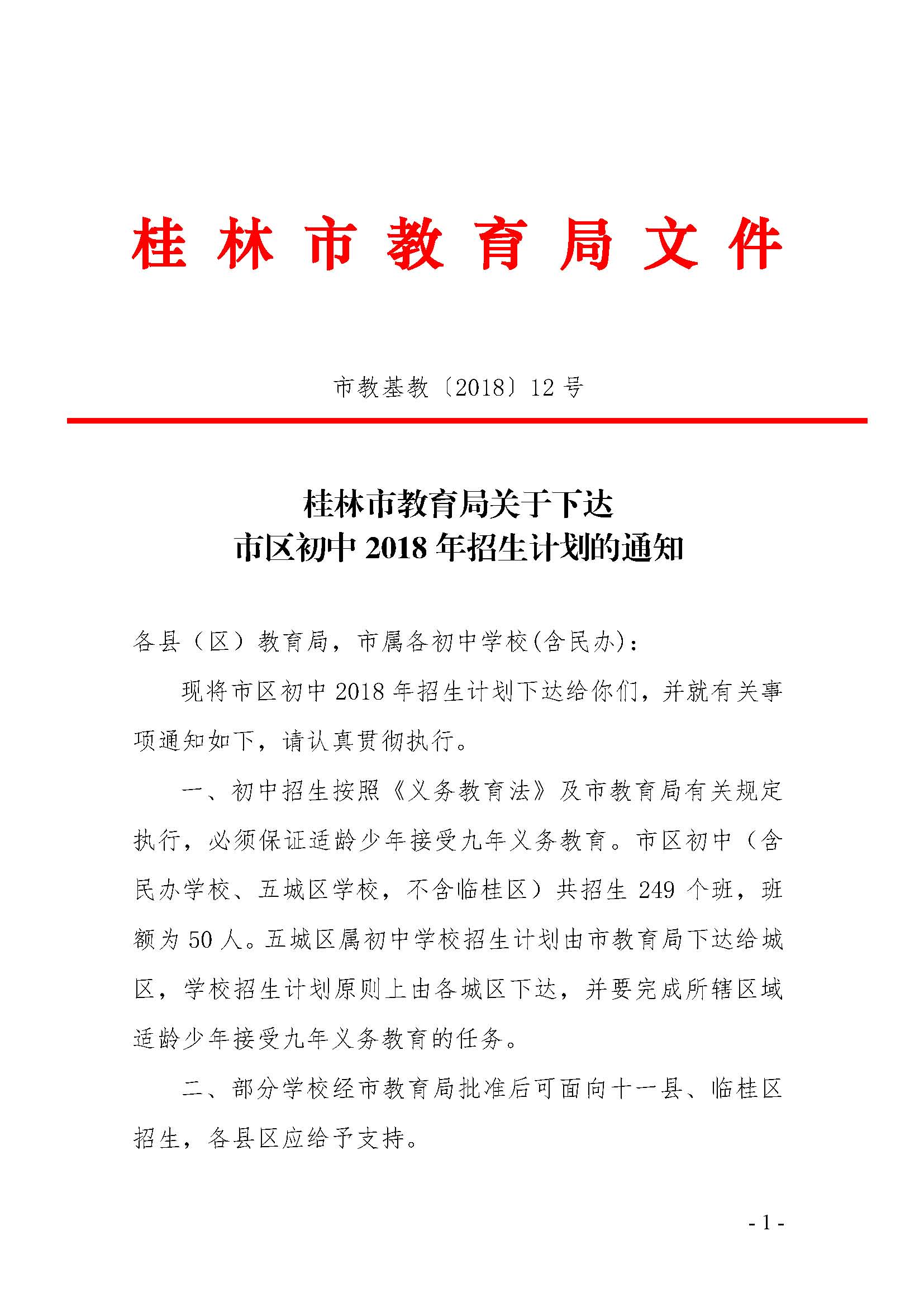 桂林市教育局关于下达市区初中2018年招生计划的通知_页面_1