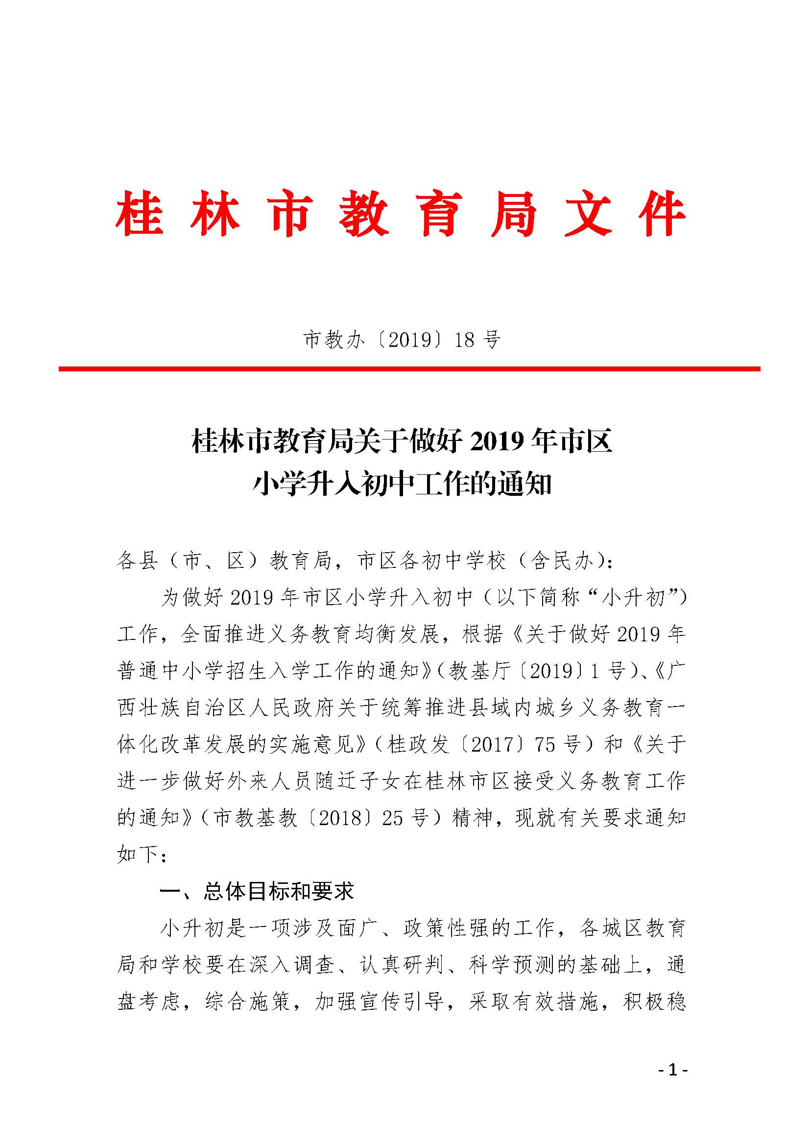 桂林市教育局关于做好2019年市区小学升入初中工作的通知_页面_01