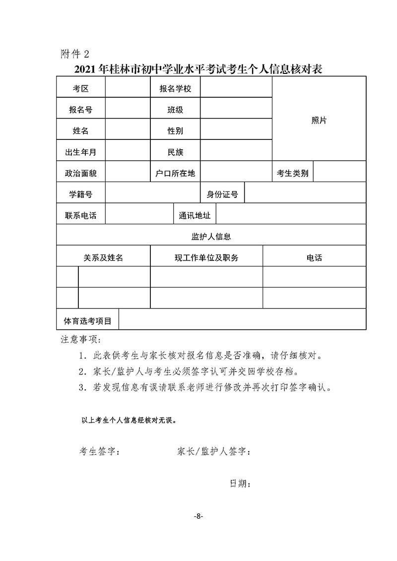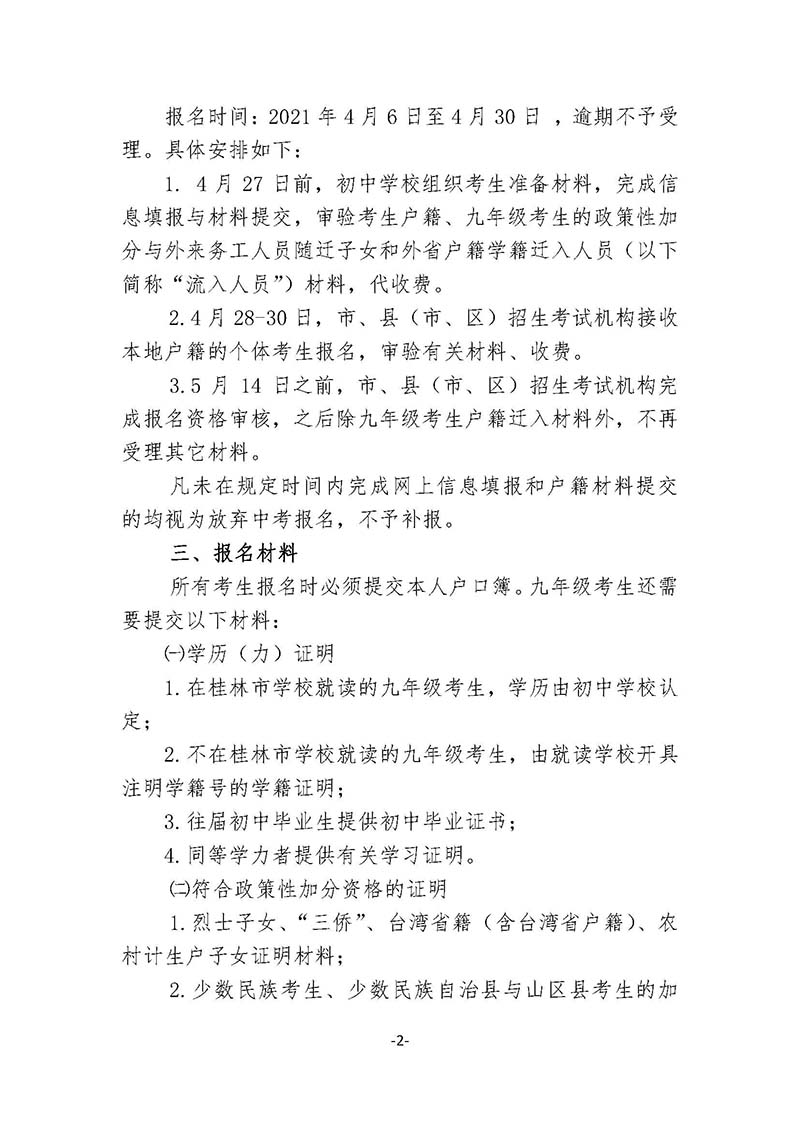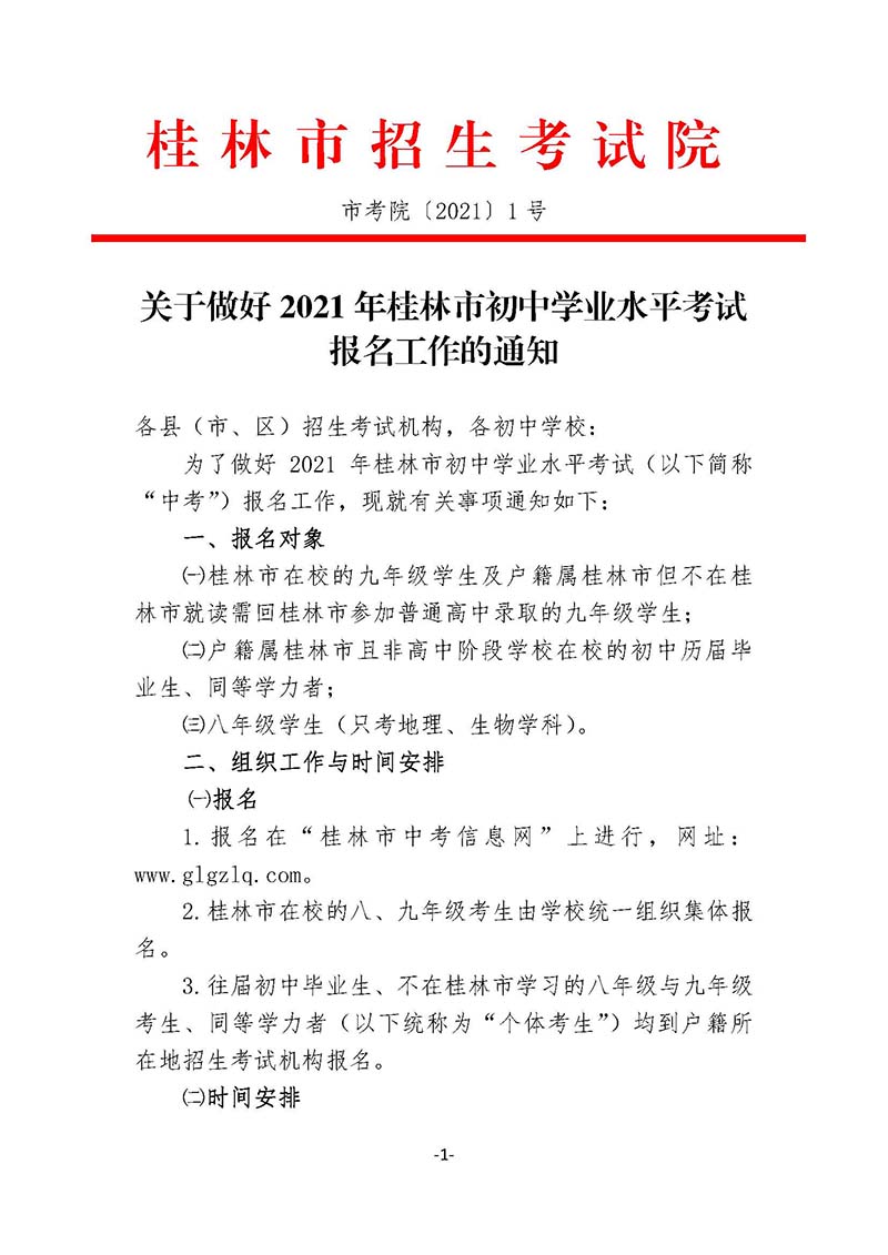 关于做好2021年桂林市初中学业水平考试报名工作的通知