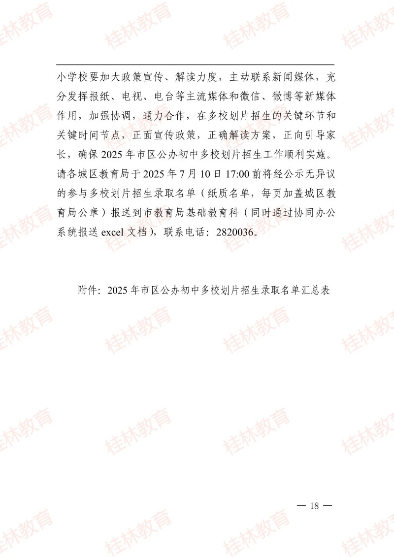 市教基教〔2025〕13 号 桂林市教育局关于做好2025年市直属义务教育学校和市区初中招生入学工作的通知