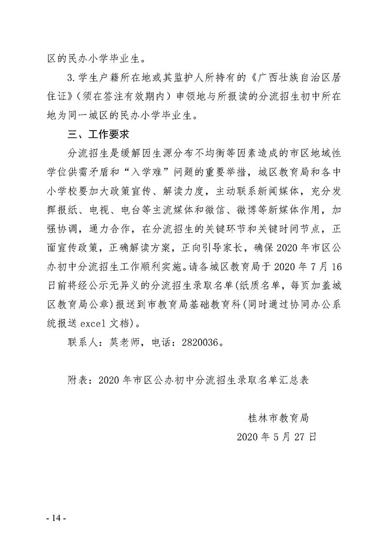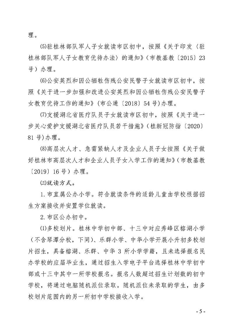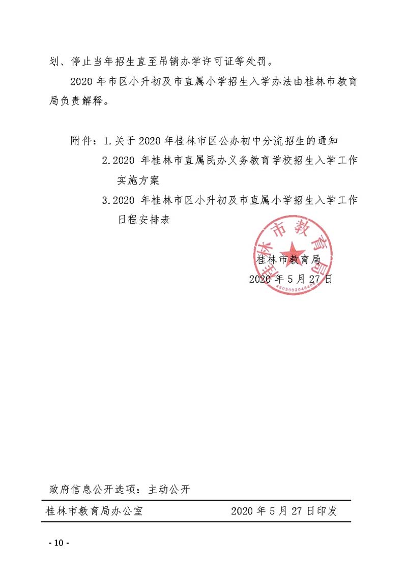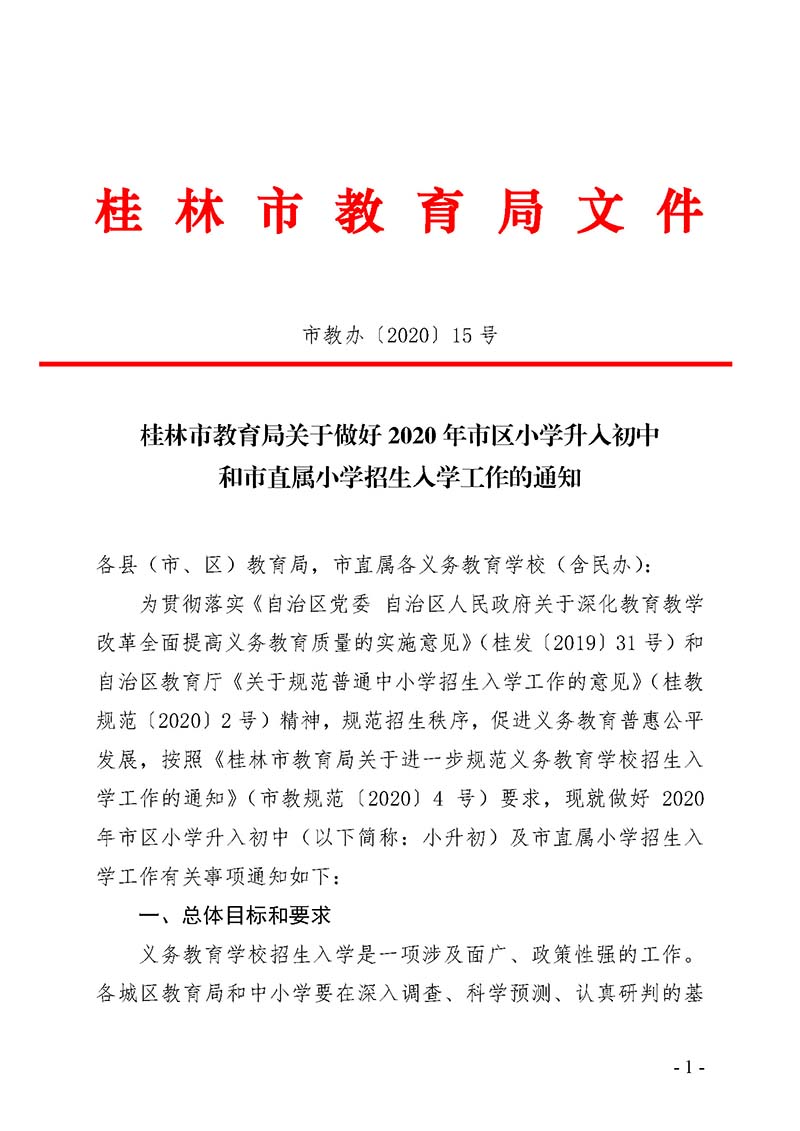 市教办【2020】15号 桂林市教育局关于做好2020年市区小学升入初中和市直属小学招生入学工作的通知