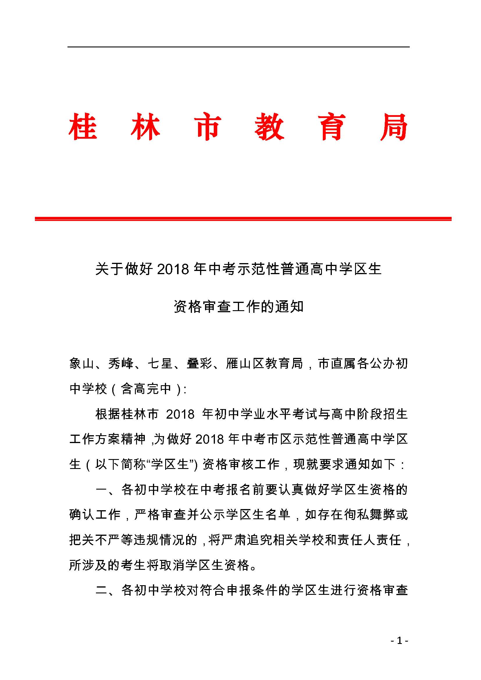 关于做好2018年中考示范性普通高中学区生资格审查工作的通知_页面_1