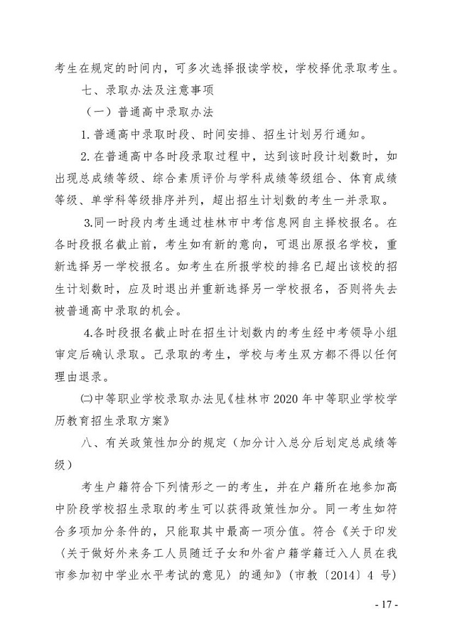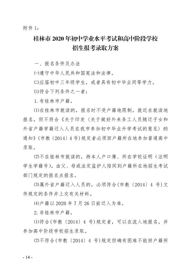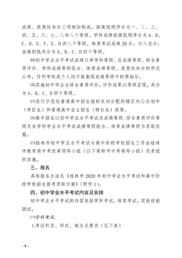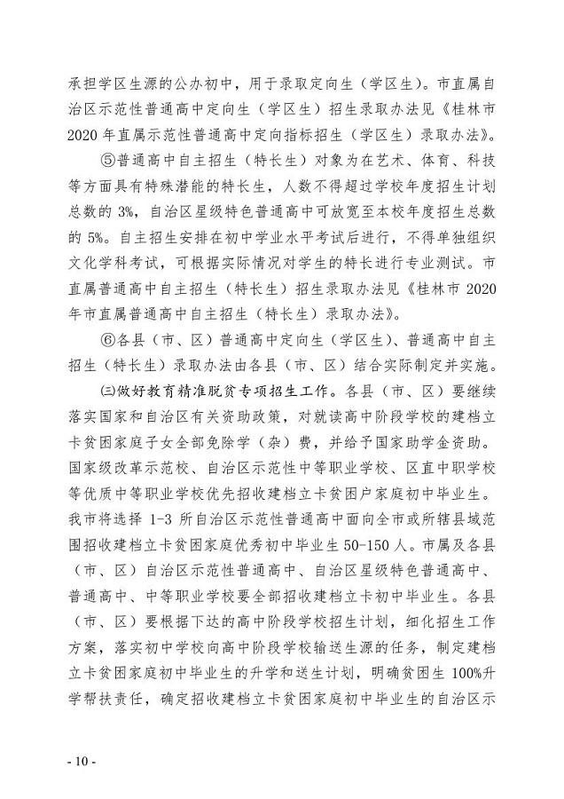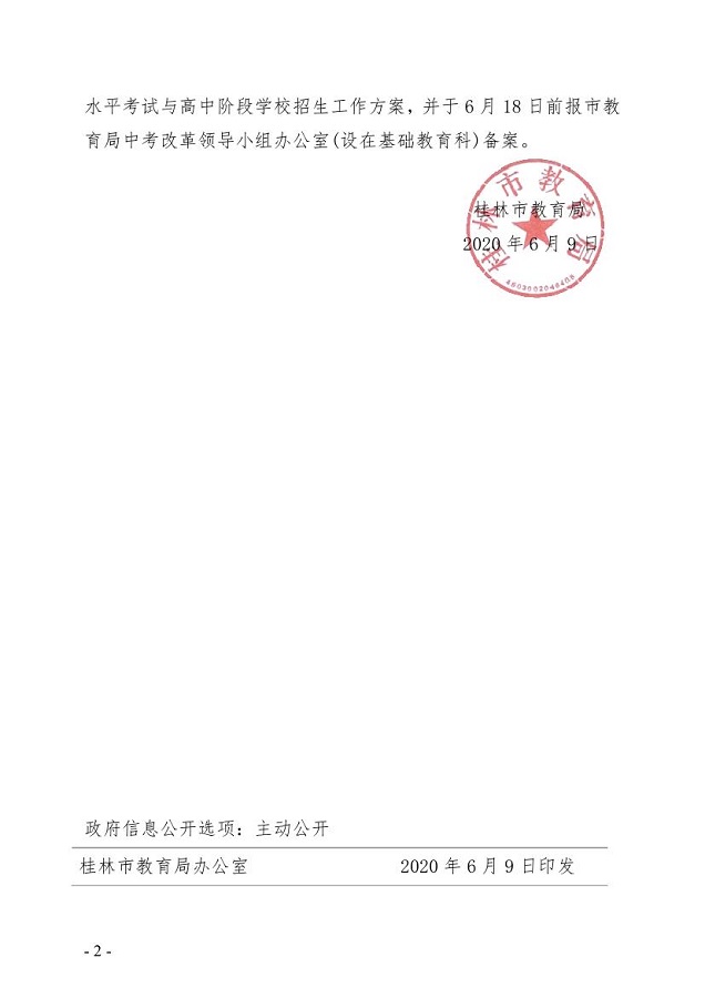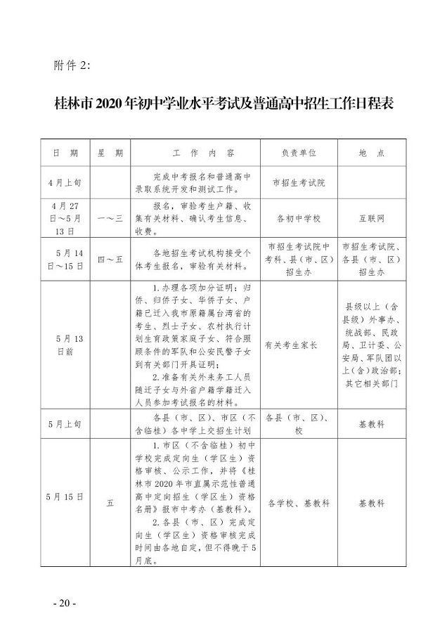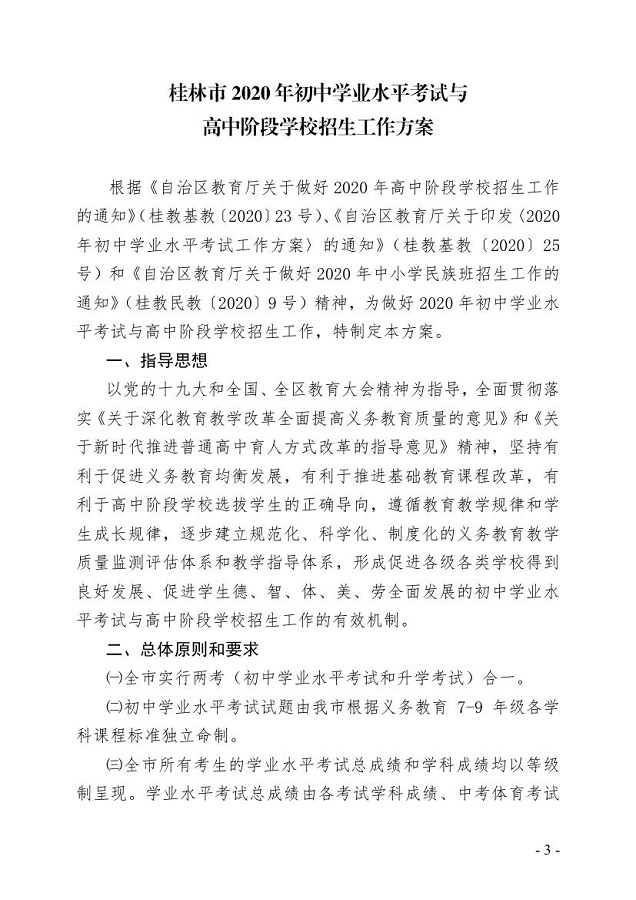 市教【2020】3号 关于印发《桂林市2020年初中学业水平考试与高中阶段学校招生工作方案》的通知