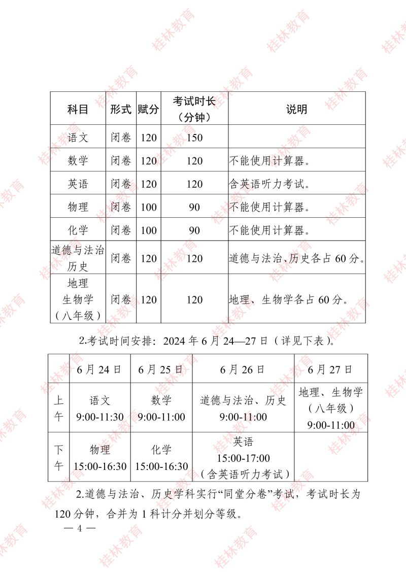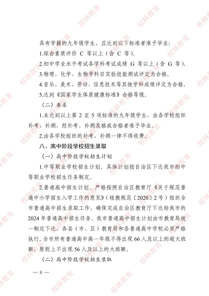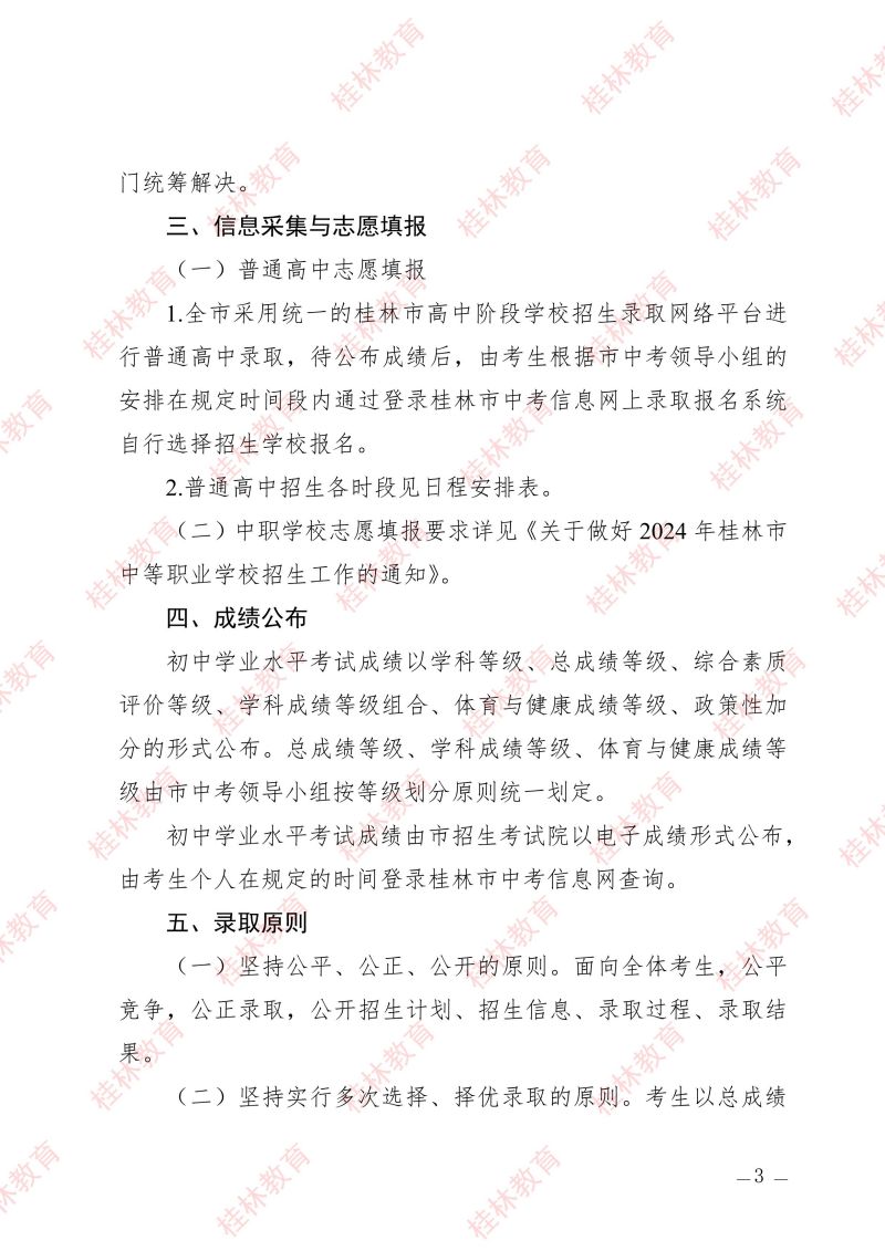市教中考〔2024〕3 号 关于做好桂林市2024年初中学业水平考试与高中阶段学校招生工作的通知