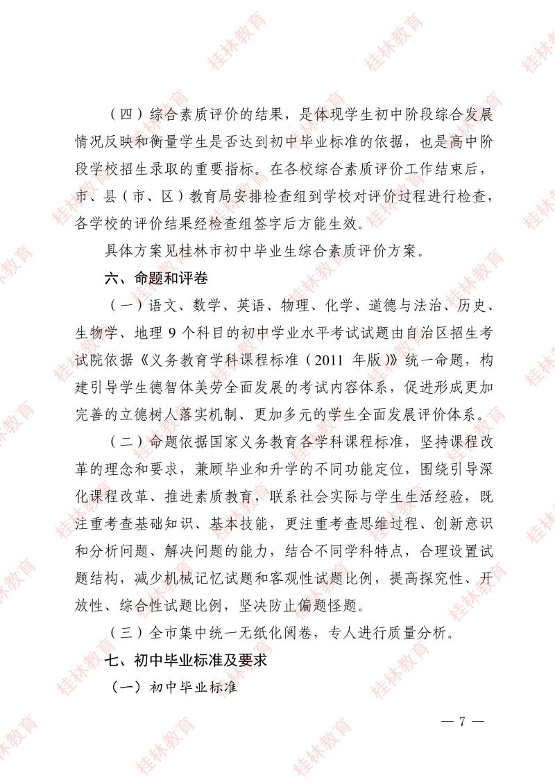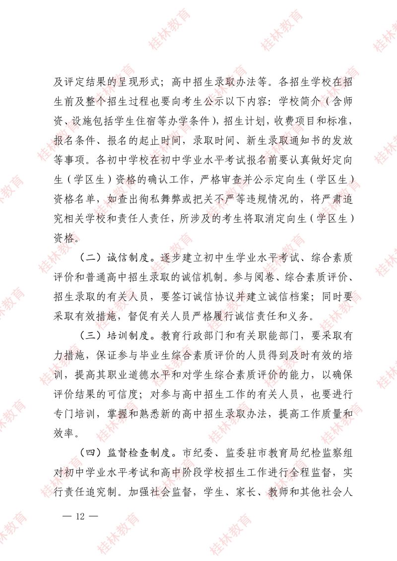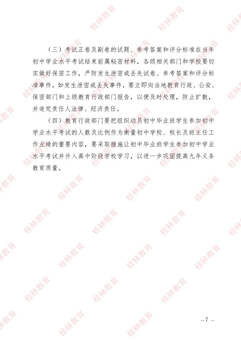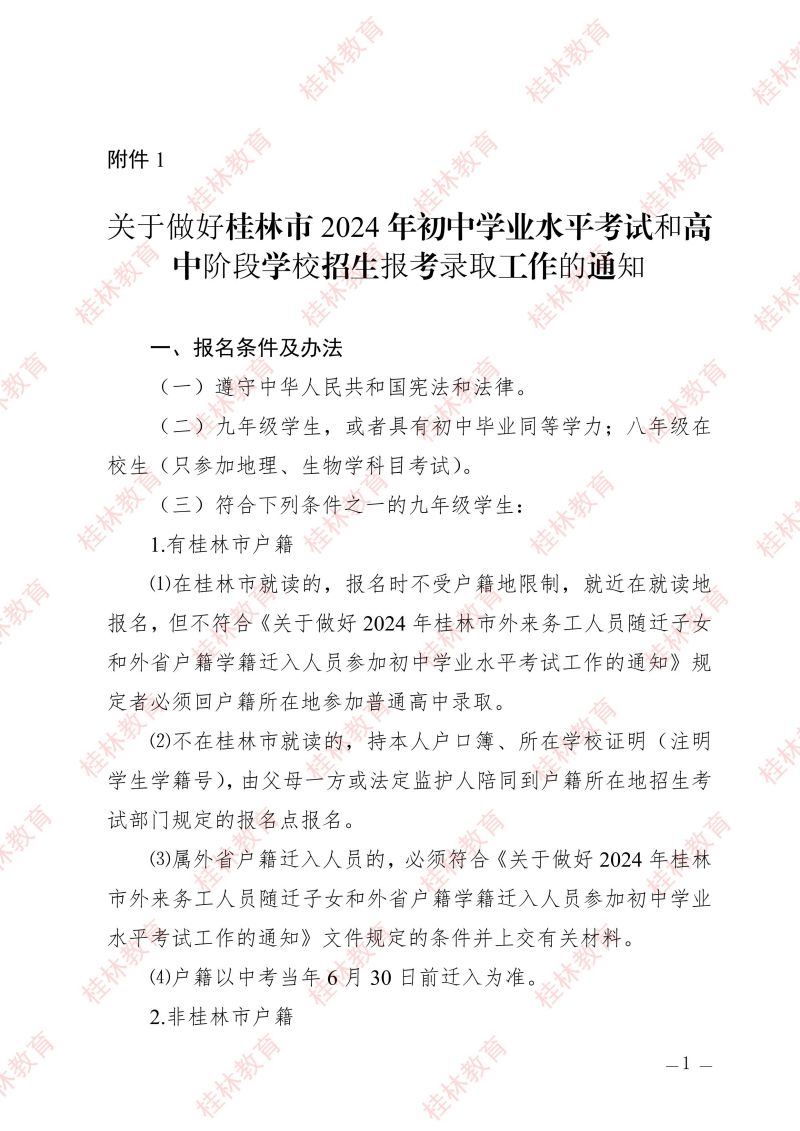市教中考〔2024〕3 号 关于做好桂林市2024年初中学业水平考试与高中阶段学校招生工作的通知