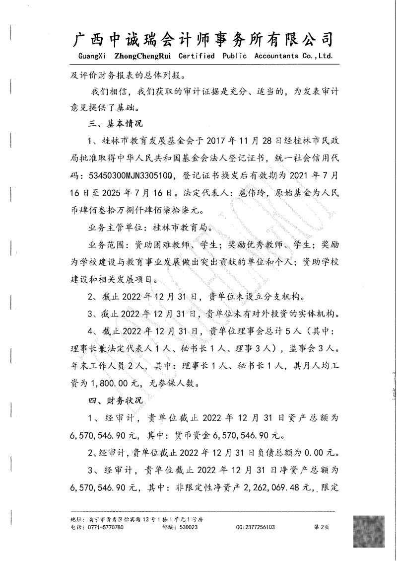 2022年度桂林市教育发展基金会审计报告