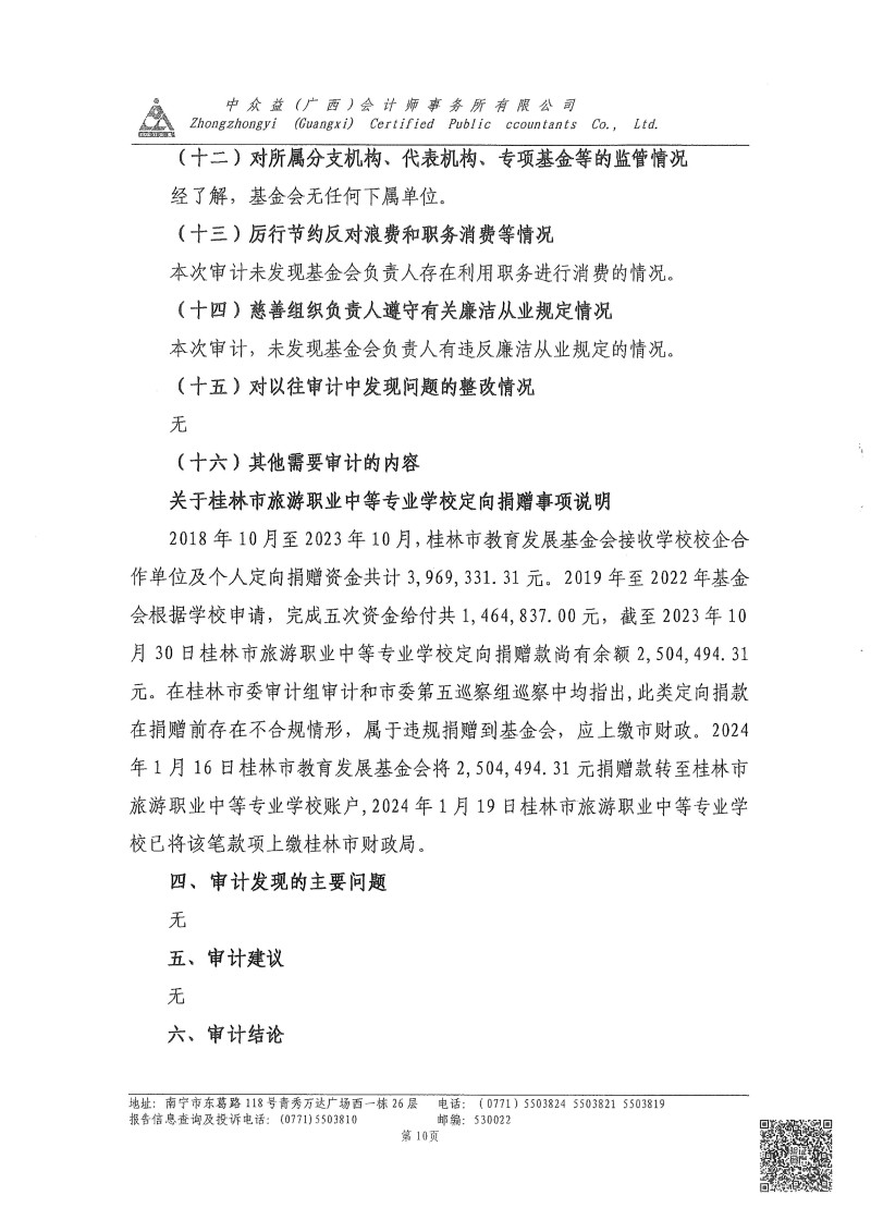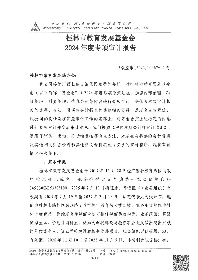 2024年度桂林市教育发展基金会专项审计报告