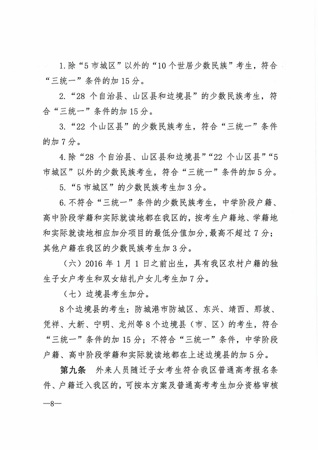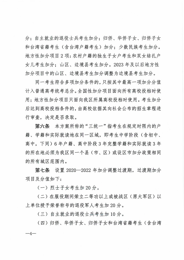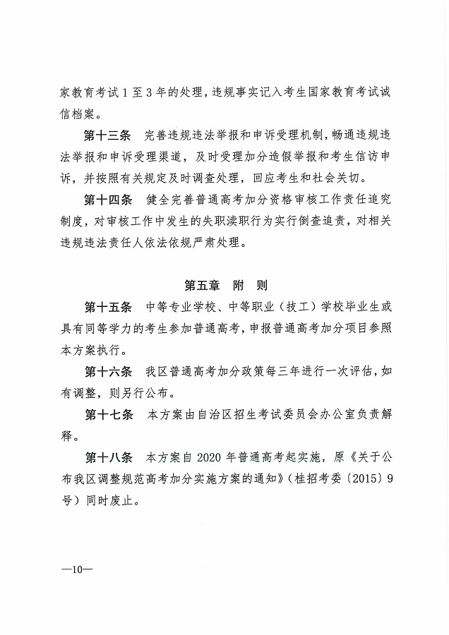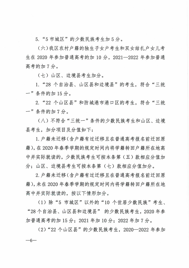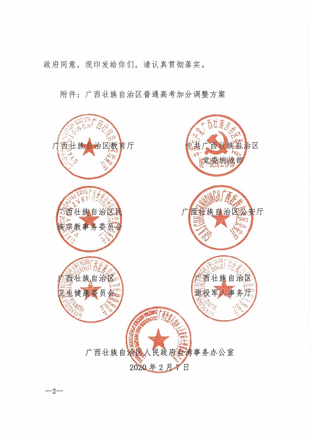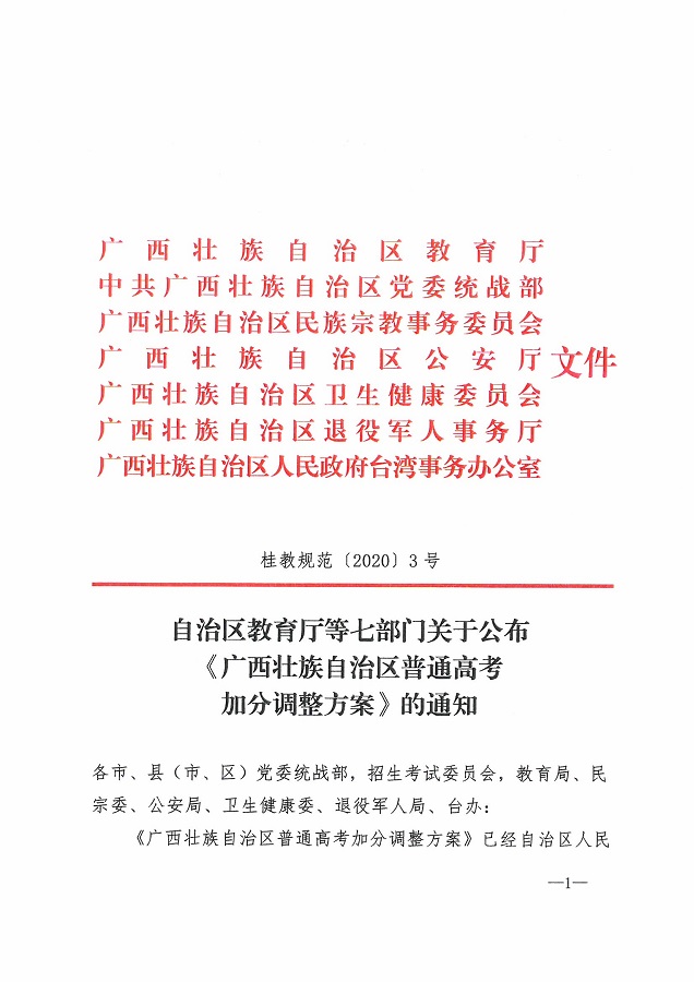 (桂教规范〔2020〕3号)自治区教育厅等七部门关于公布《广西壮族自治区普通高考加分调整方案》的通知