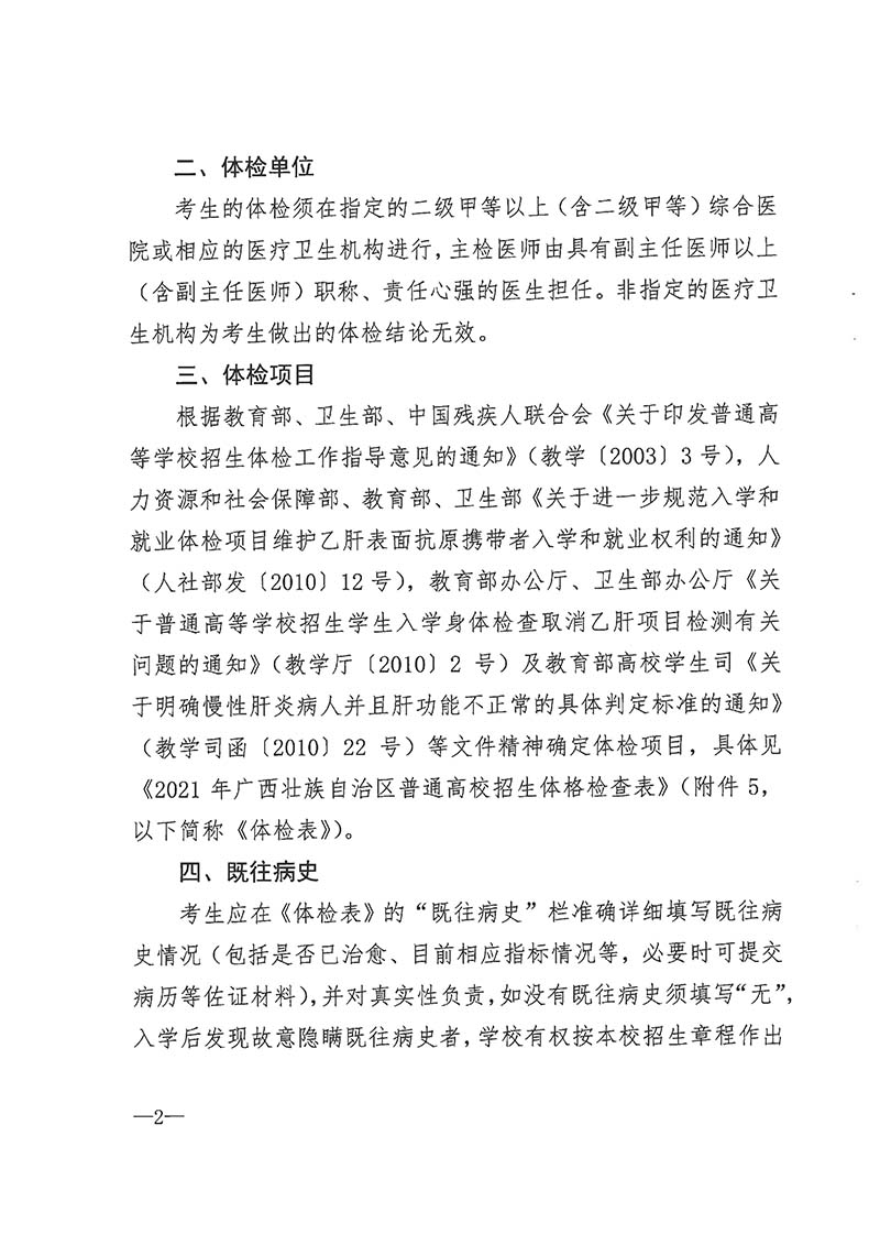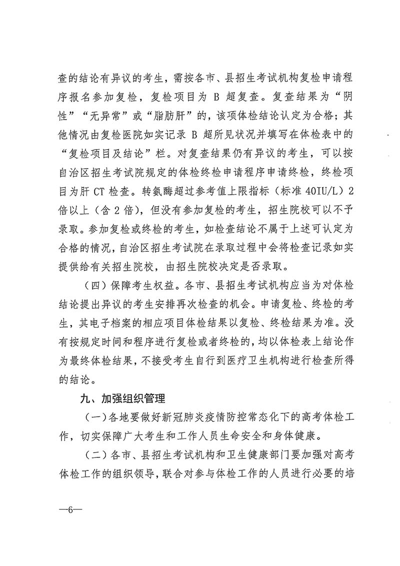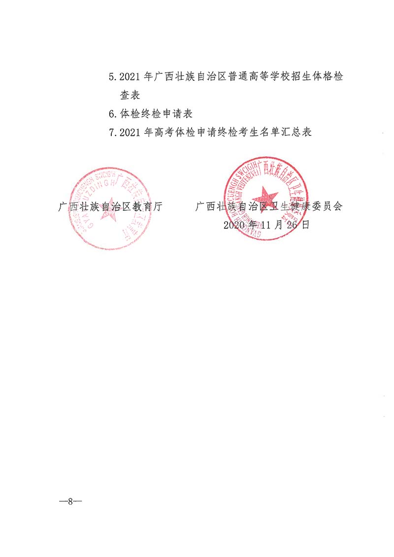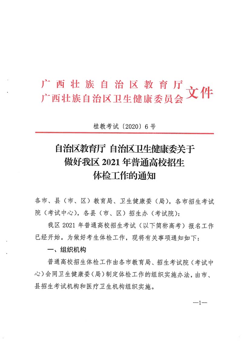 桂教考试〔2020〕6号 自治区教育厅 自治区卫生健康委 关于做好我区2021年普通高校招生体检工作的通知