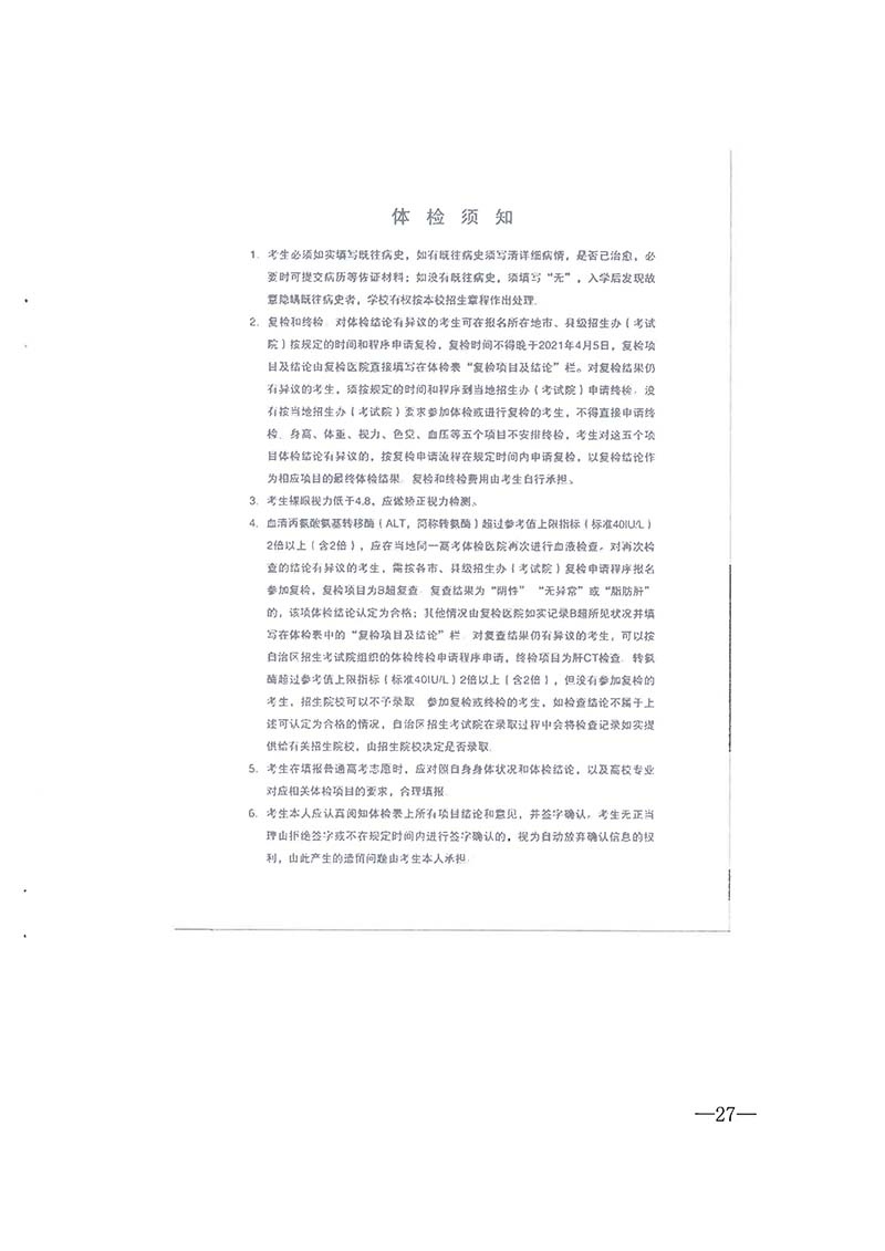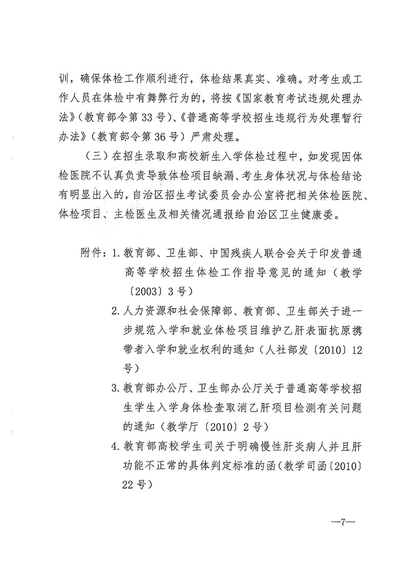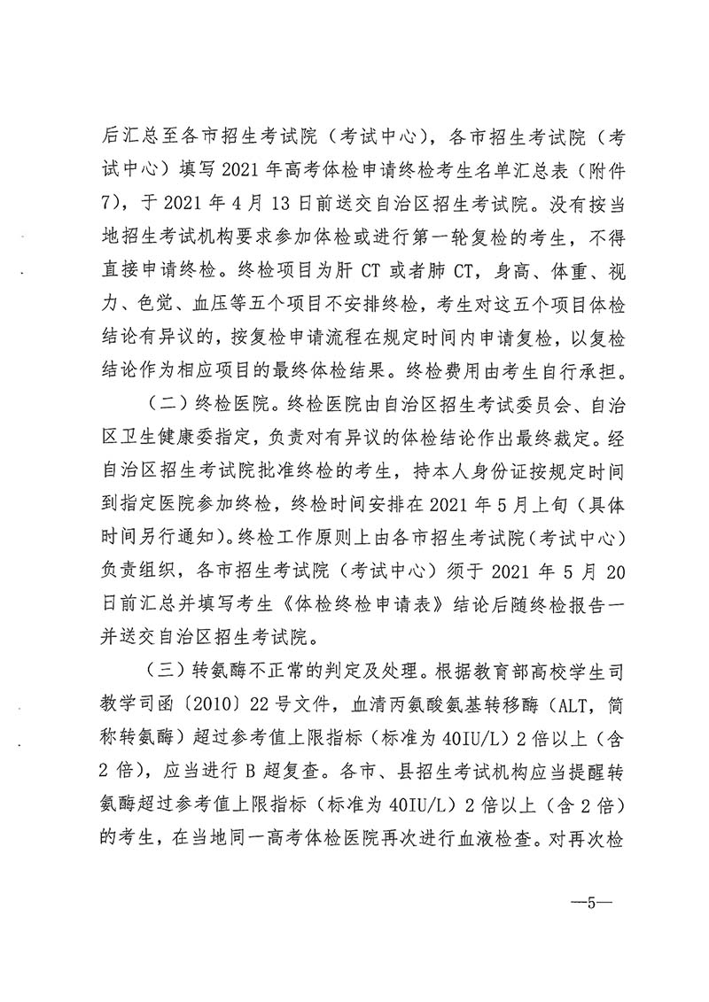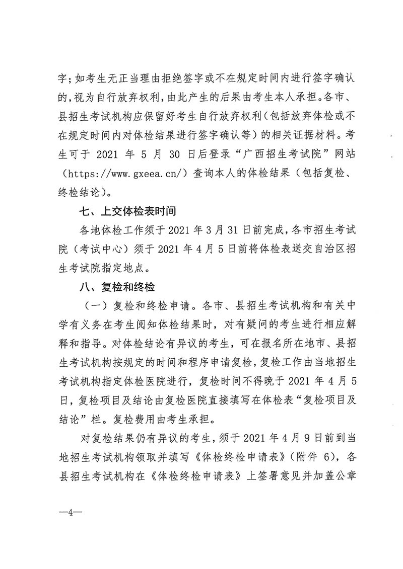 桂教考试〔2020〕6号 自治区教育厅 自治区卫生健康委 关于做好我区2021年普通高校招生体检工作的通知