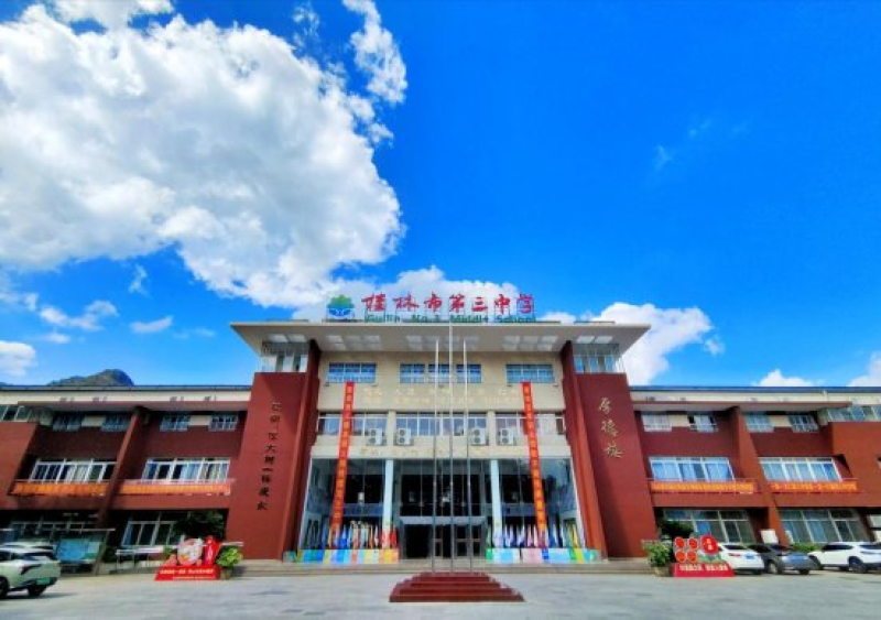 桂林市第三中学是桂林市教育局直属的一所高完中学校,2023年在桂林市第三中学和桂林德智外国语学校的基础上完成“公参民”改制,是一所按教育部标准规划设计的现代化寄宿制学校。学校占地89505平方米。校舍总建筑面积为30372.91平方米,学生公寓、食堂及体育运动场地齐全。各项生均占有面积及硬件配套设施是桂林市最好的学校之一。
