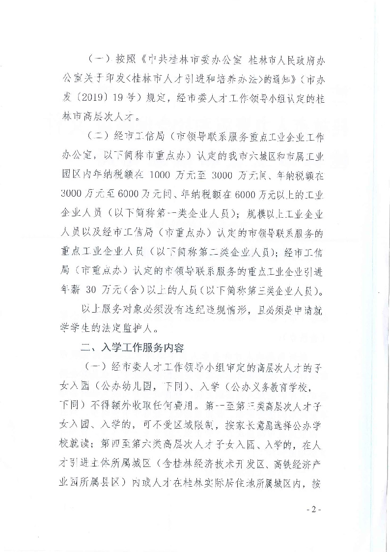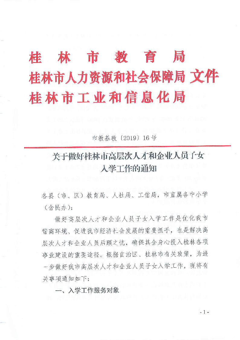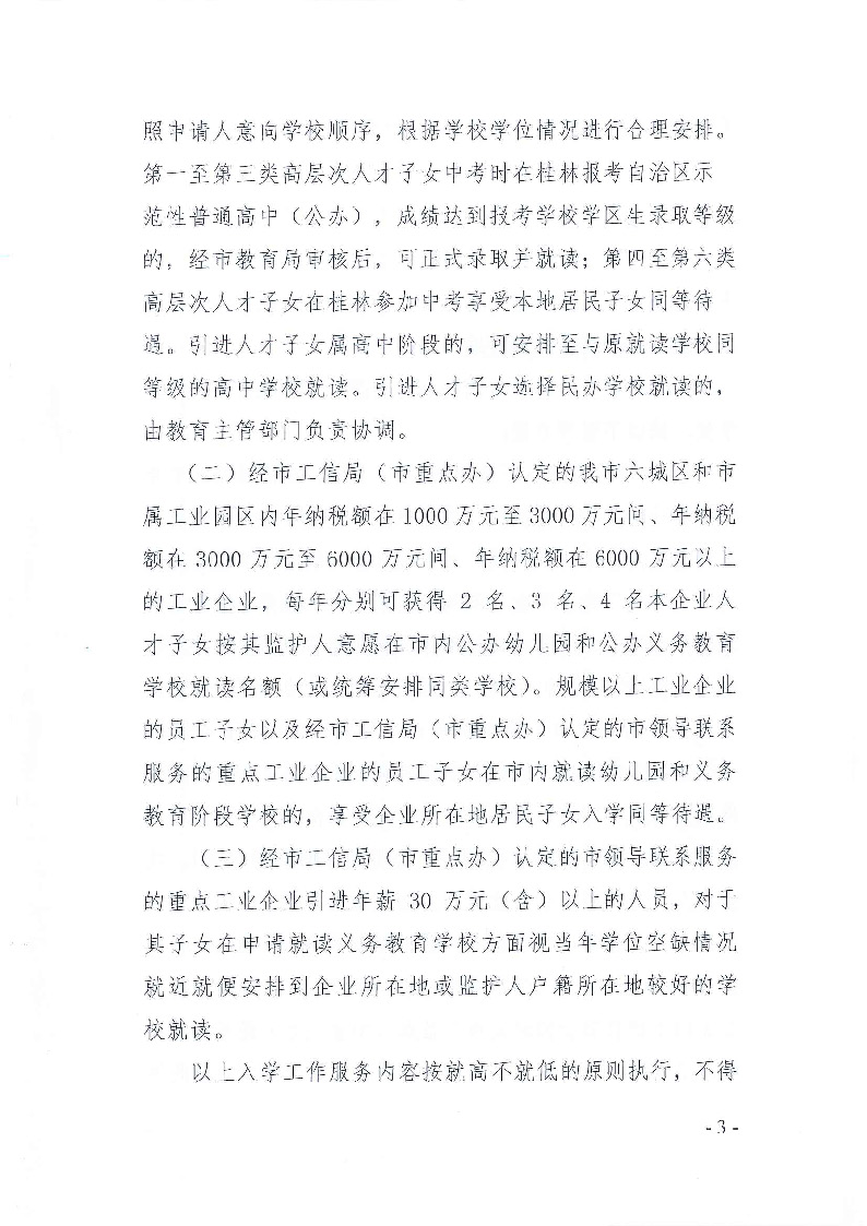 关于做好桂林市高层次人才和企业人员子女入学工作的通知