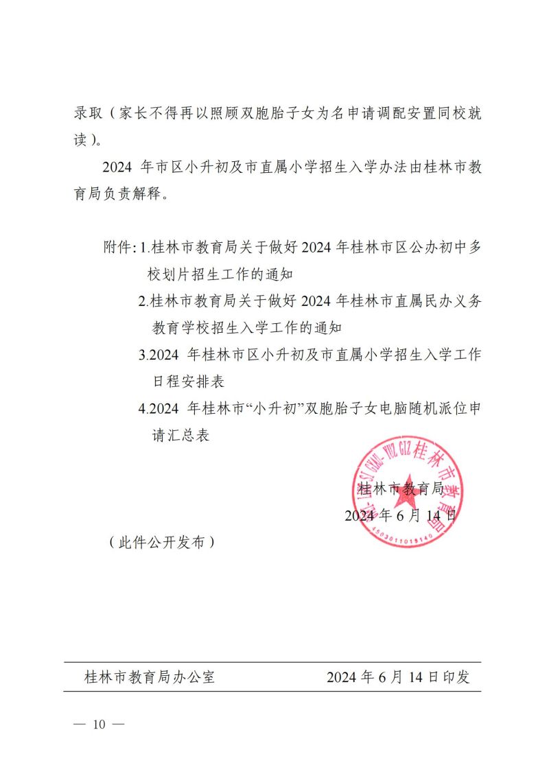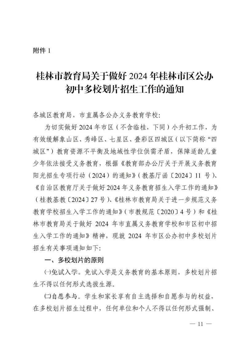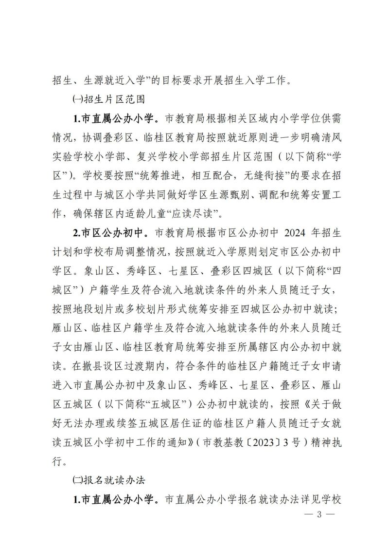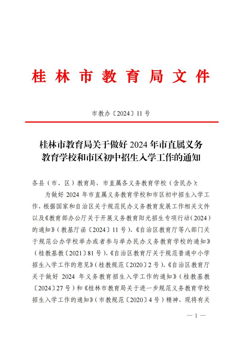 市教办〔2024〕11 号桂林市教育局关于做好2024年市直属义务教育学校和市区初中招生入学工作的通知
