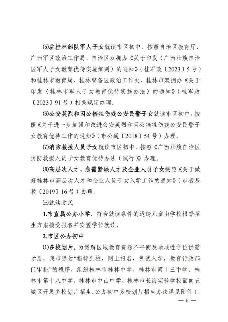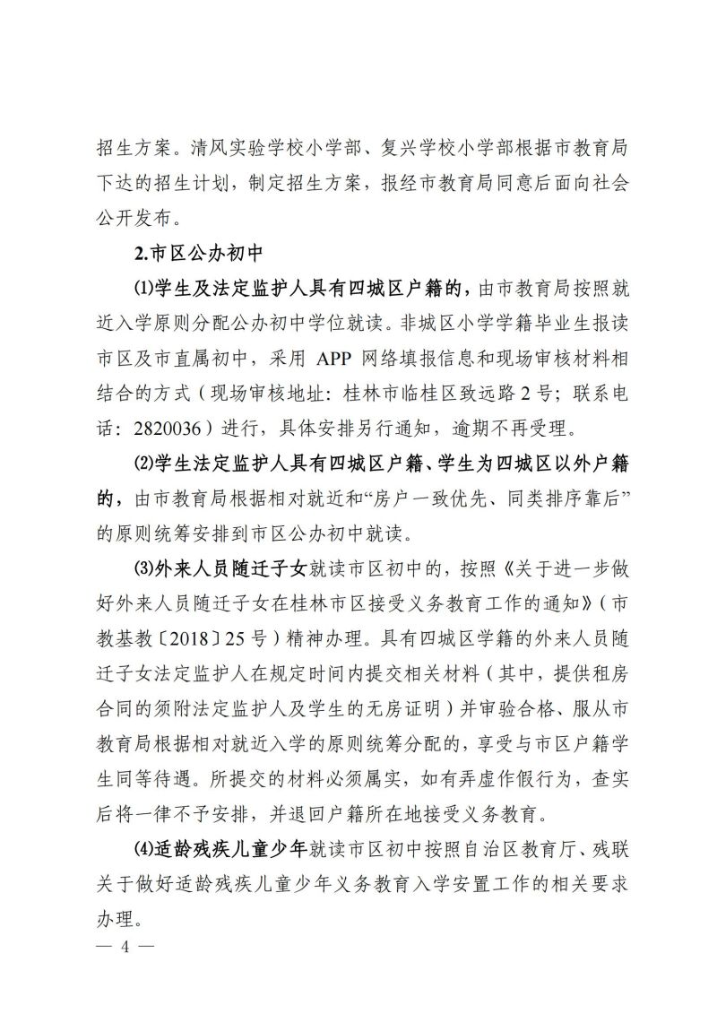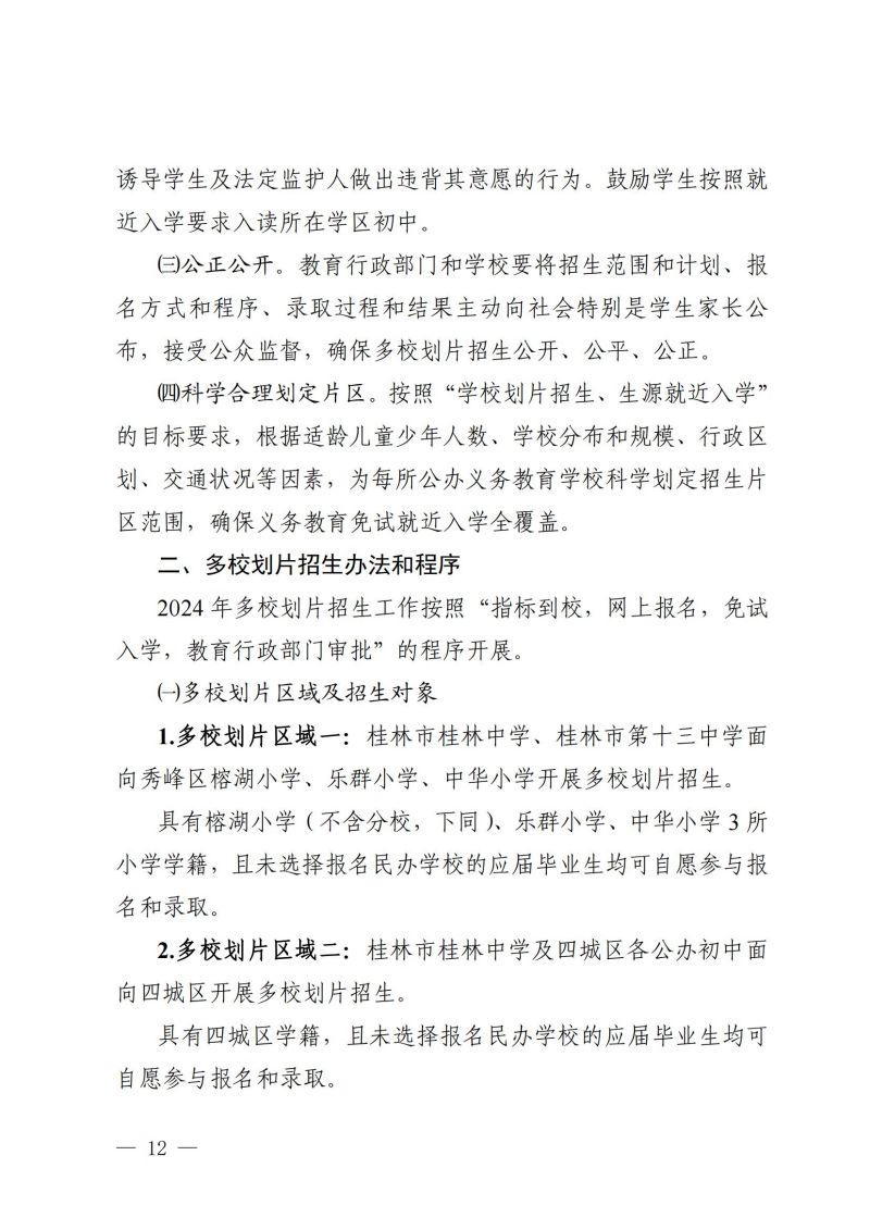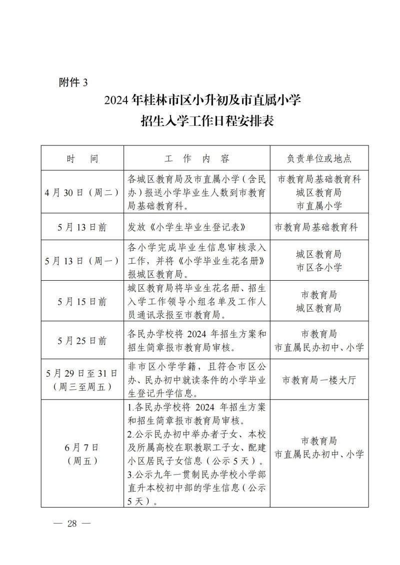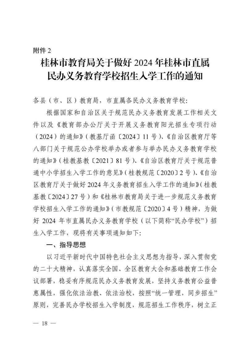 市教办〔2024〕11 号桂林市教育局关于做好2024年市直属义务教育学校和市区初中招生入学工作的通知