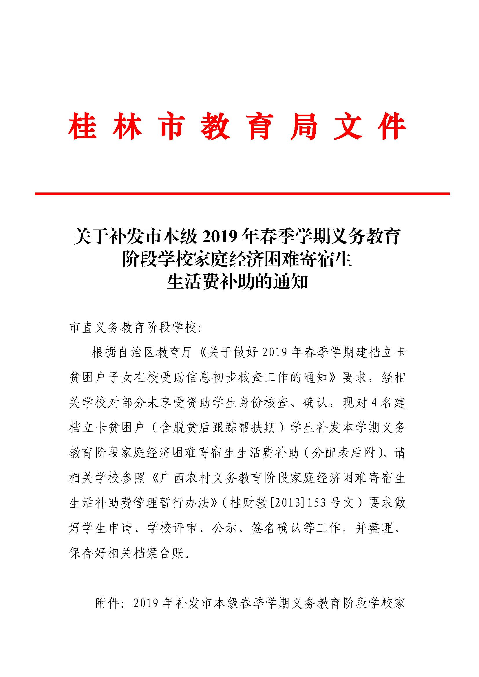 关于补发市本级2019年春季学期义务教育阶段学校家庭经济困难寄宿生生活费补助的通知_页面_1