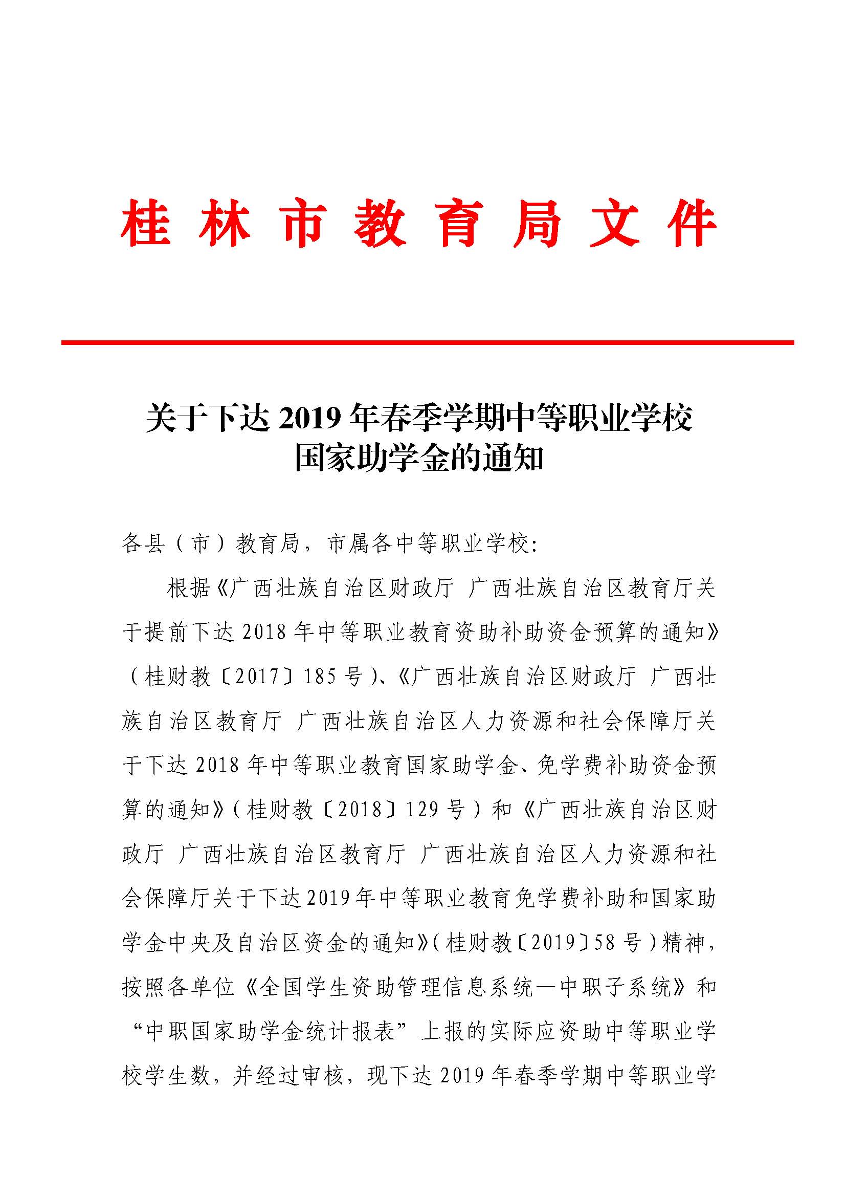关于下达2019年春季学期中等职业学校国家助学金的通知br_页面_1