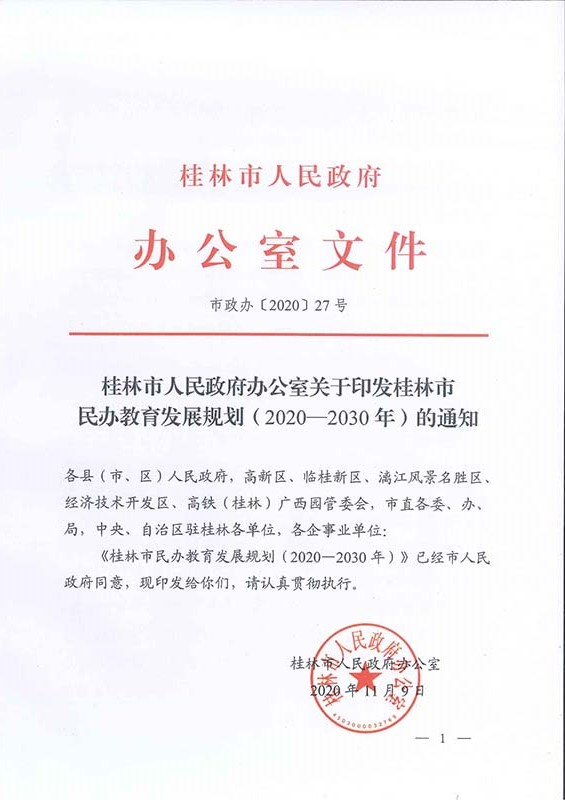 市政办【2020】27号桂林市人民政府办公室关于印发桂林市民办教育发展规划(2020-2030年)的通知