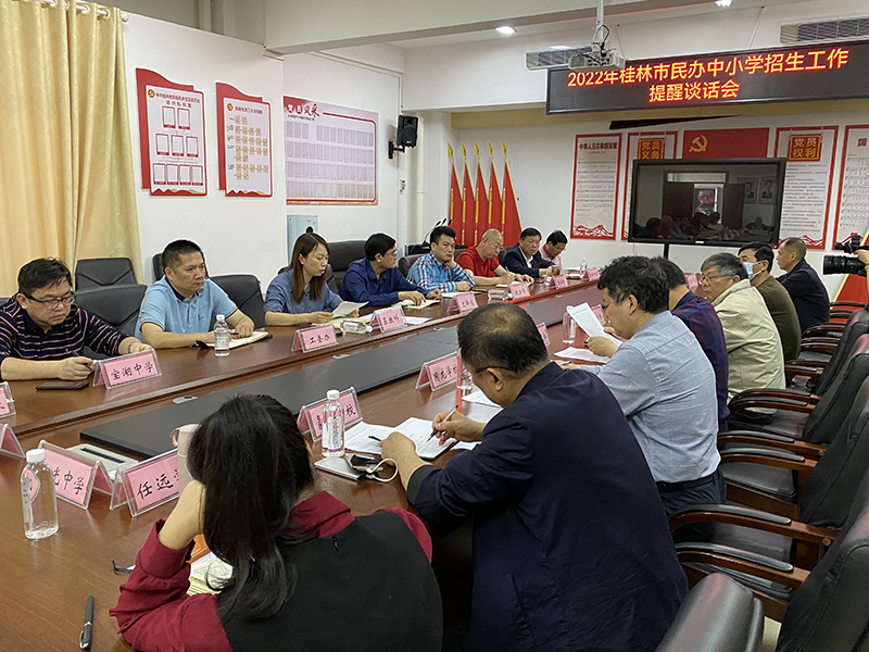 为认真贯彻执行教育部、自治区教育厅有关文件精神,切实维护我市招生工作秩序,维护学生和家长权益,维护社会和谐稳定。4月25日,桂林市教育局组织市直属和部分城区民办中小学开展2022年招生工作提醒谈话会。市委教育工委委员,市教育局党组成员、副局长文泽鸿出席会议并讲话。