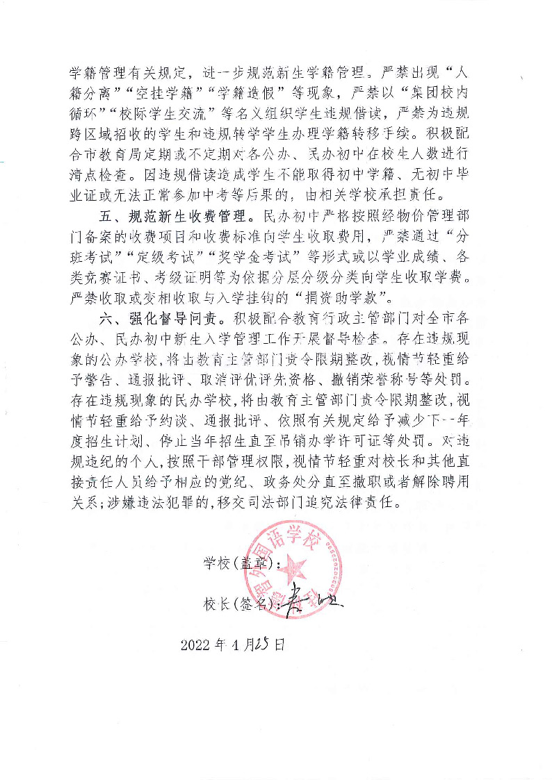 会后,我市直属民办中小学分别签订了《2022年桂林市规范义务教育学校招生入学行为承诺书》和《2022年桂林市规范普通高中招生入学行为承诺书》。
