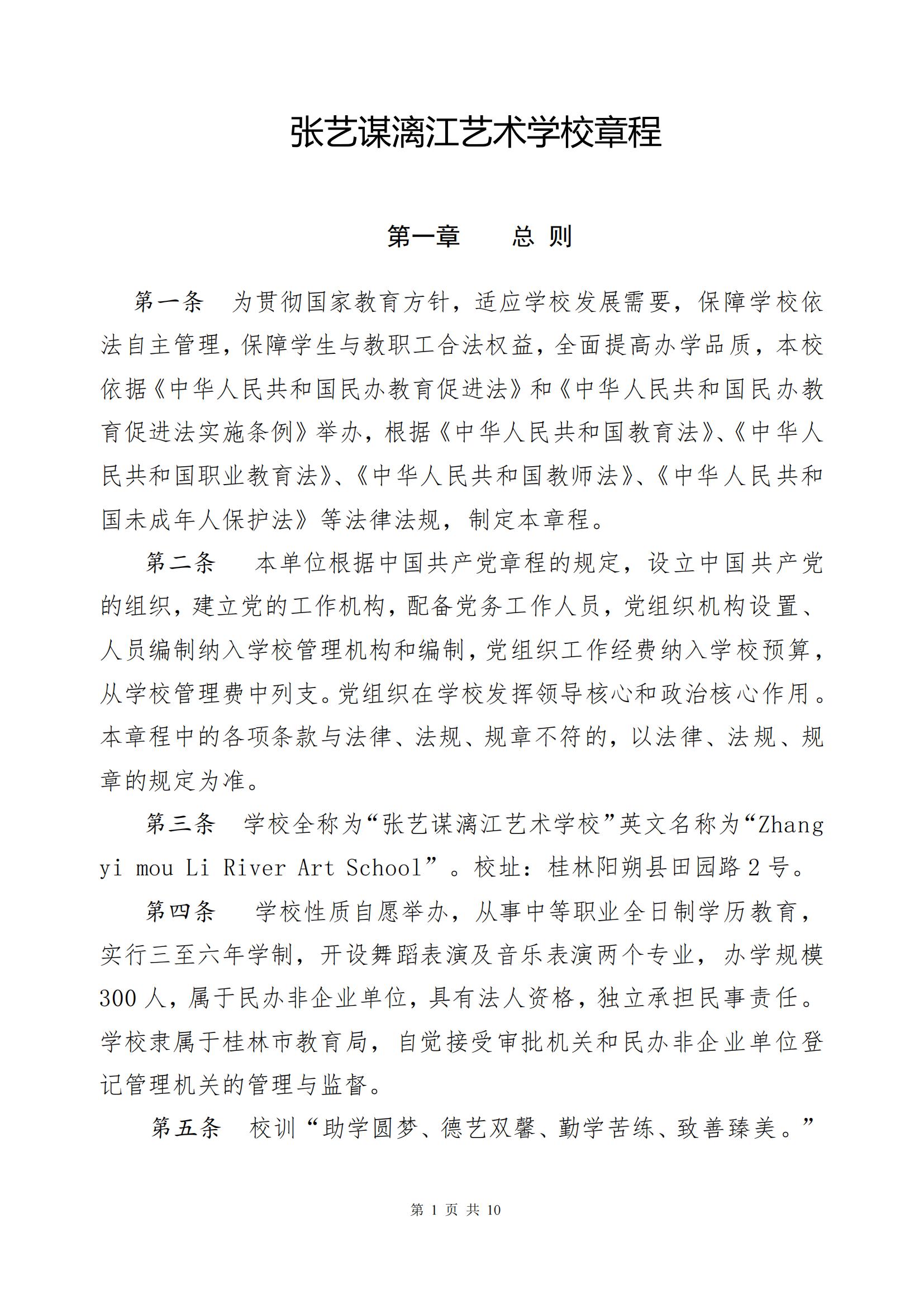张艺谋漓江艺术学校章程