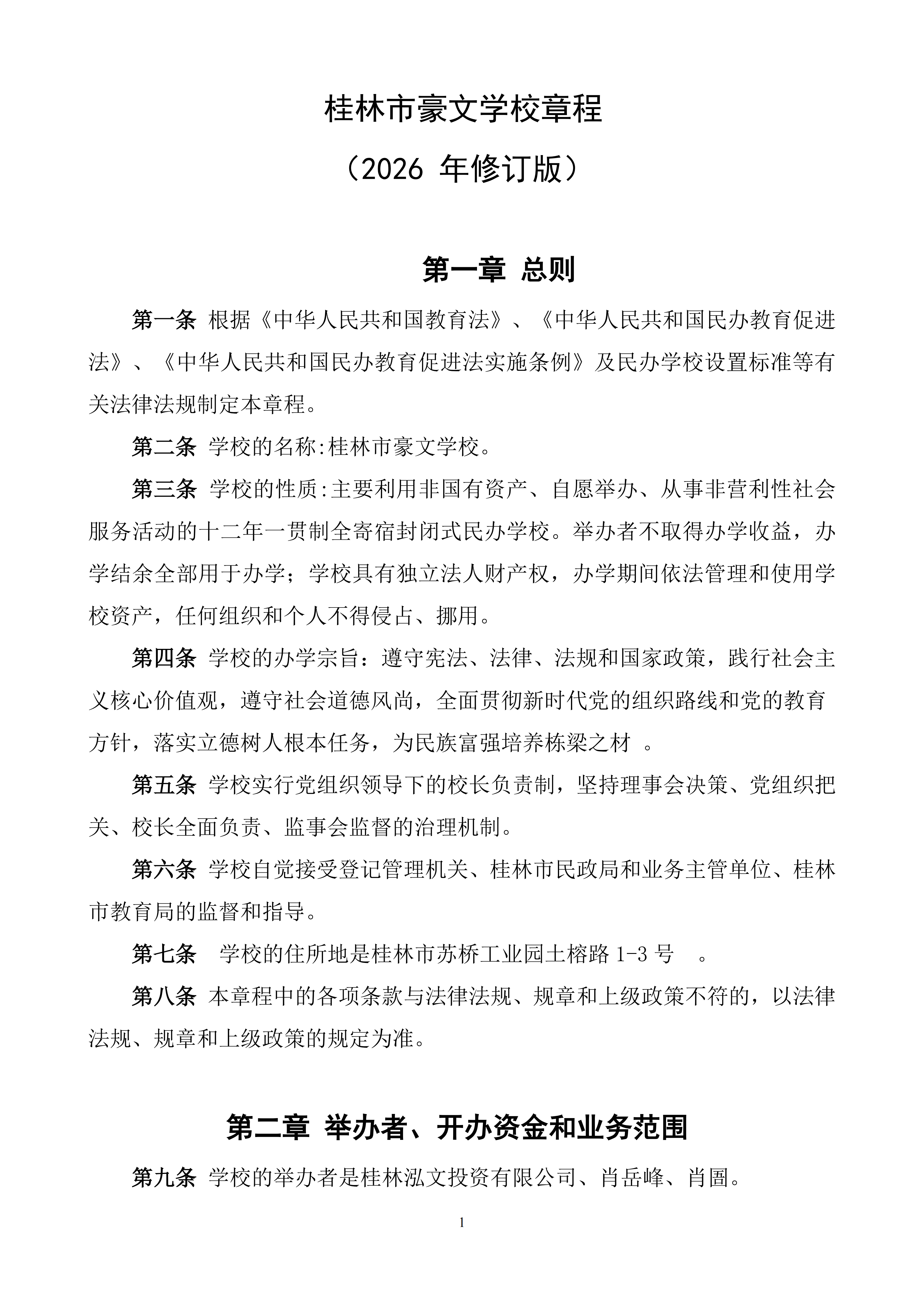 桂林市豪文学校章程