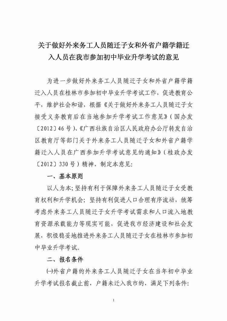 关于做好外来务工人员随迁子女和外省户籍学籍迁入人员在我市参加初中毕业升学考试意见