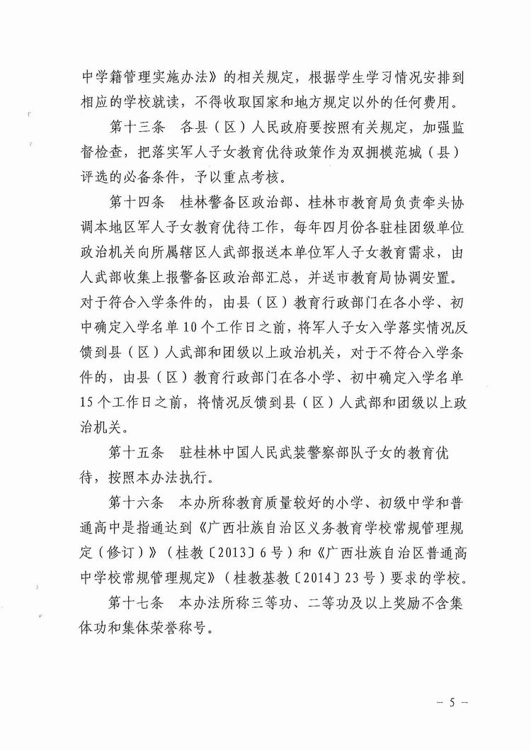 关于印发驻桂部队军人子女教育优待办法(试行)的通知