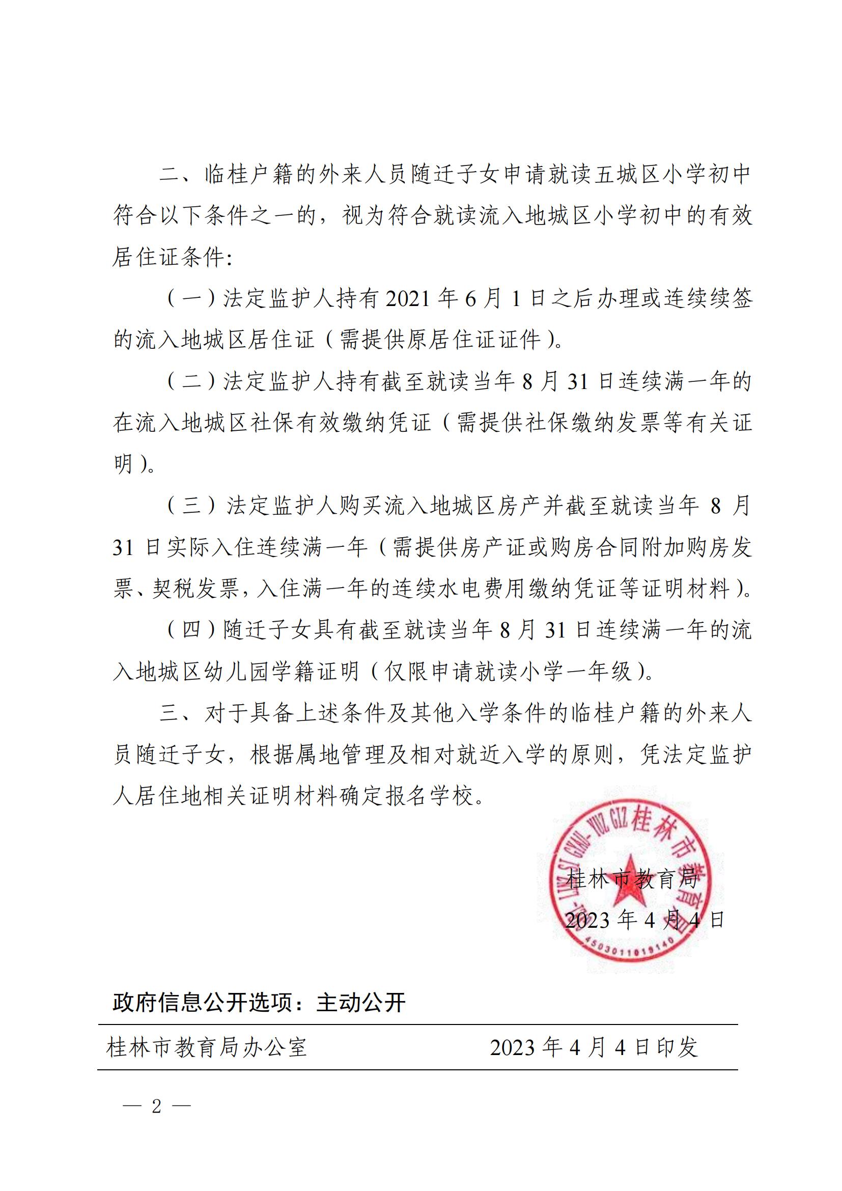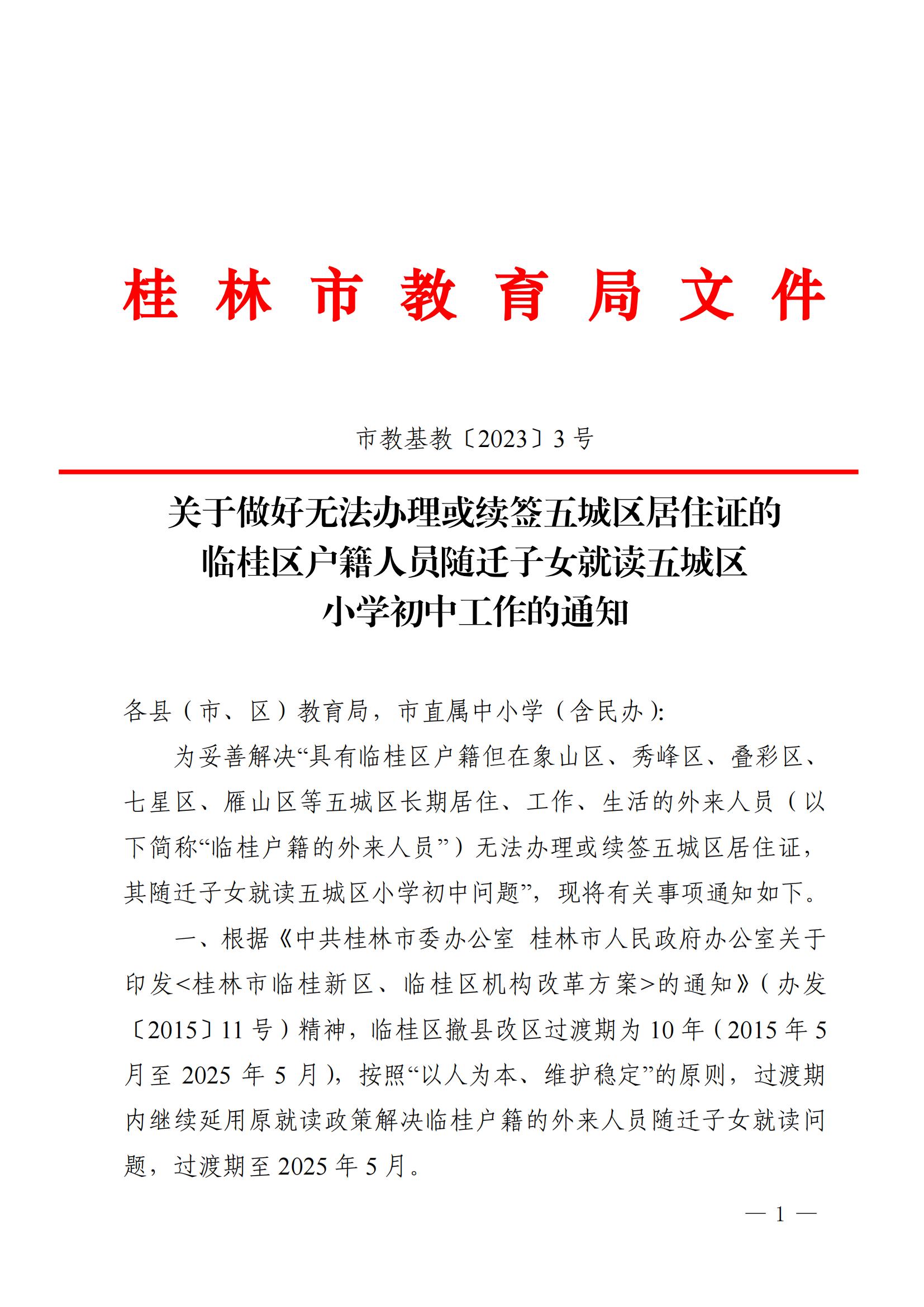 市教基教〔2023〕3 号 关于做好无法办理或续签五城区居住证的临桂区户籍人员随迁子女就读五城区小学初中工作的通知