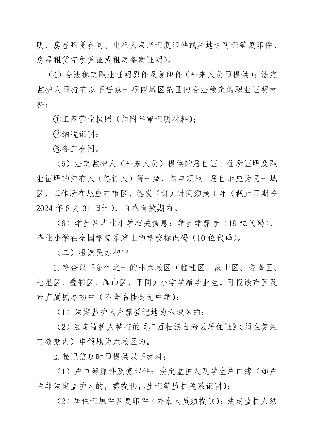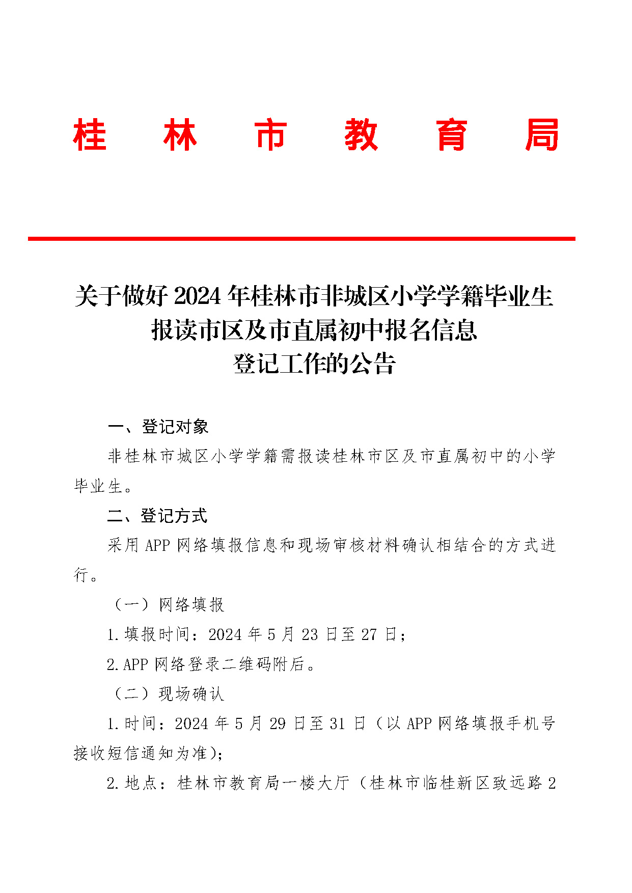 关于做好2024年桂林市非城区小学学籍毕业生报读市区及市直属初中报名信息登记工作的公告
