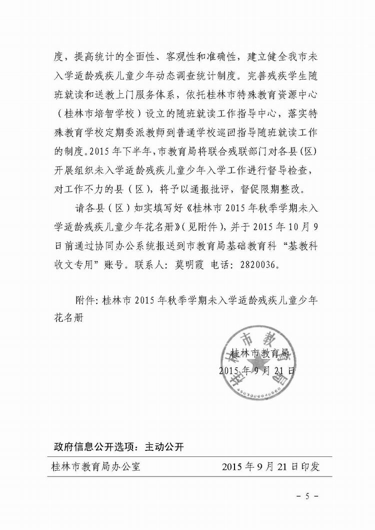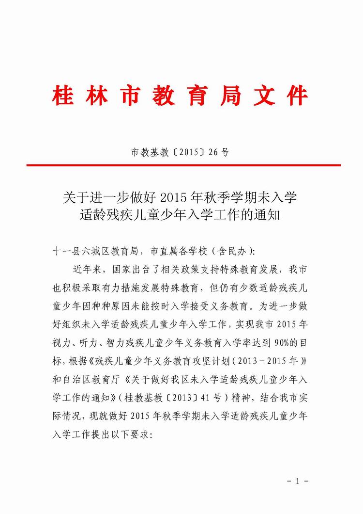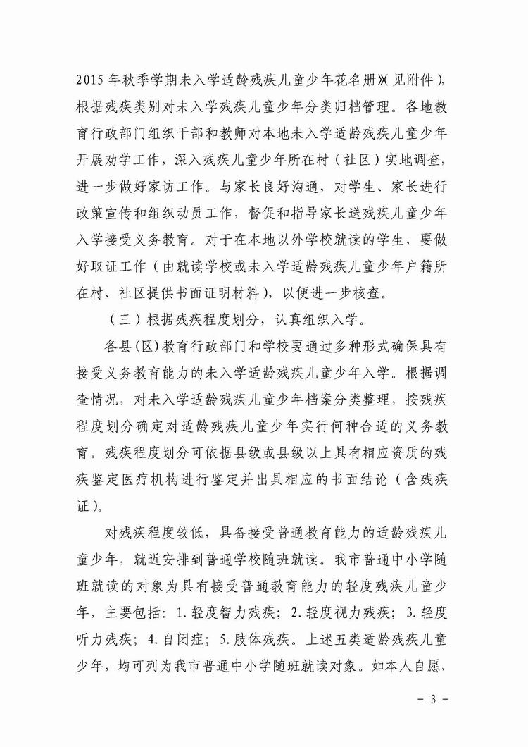 关于进一步做好2015年秋季学期未入学适龄残疾儿童少年入学工作的通知
