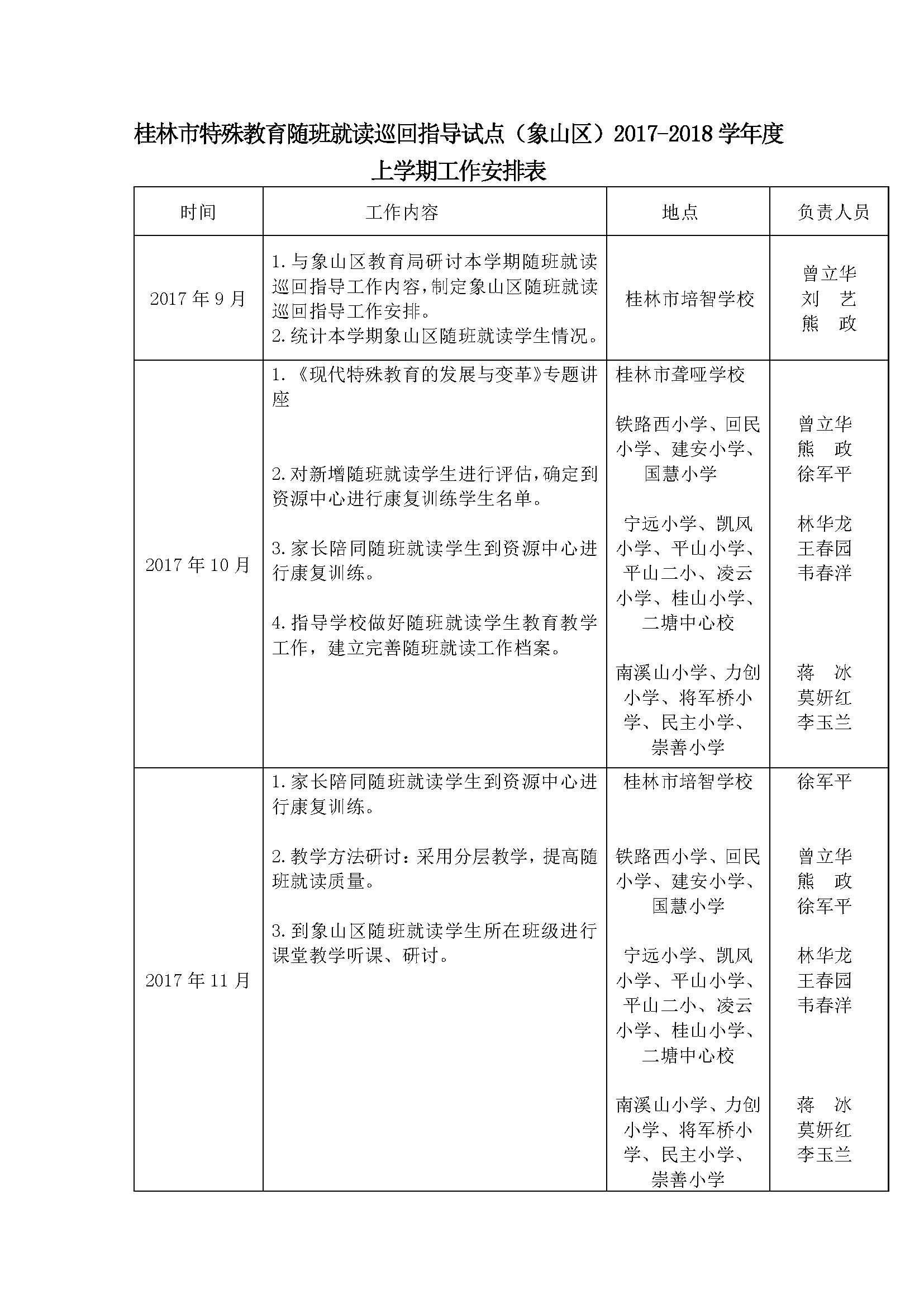关于印发《桂林市特殊教育随班就读巡回指导试点(象山区)2017-2018学年度上学期工作安排表》的通知_页面_2