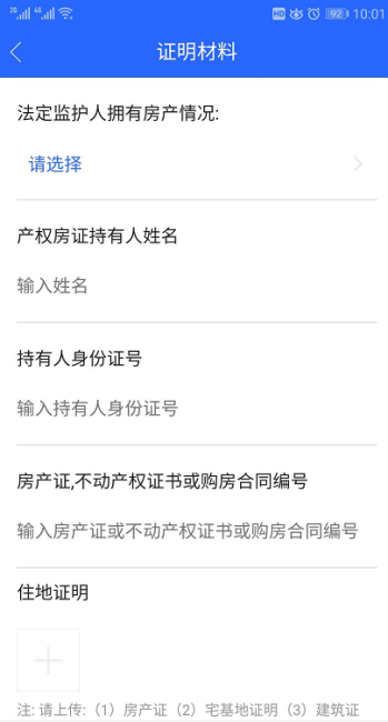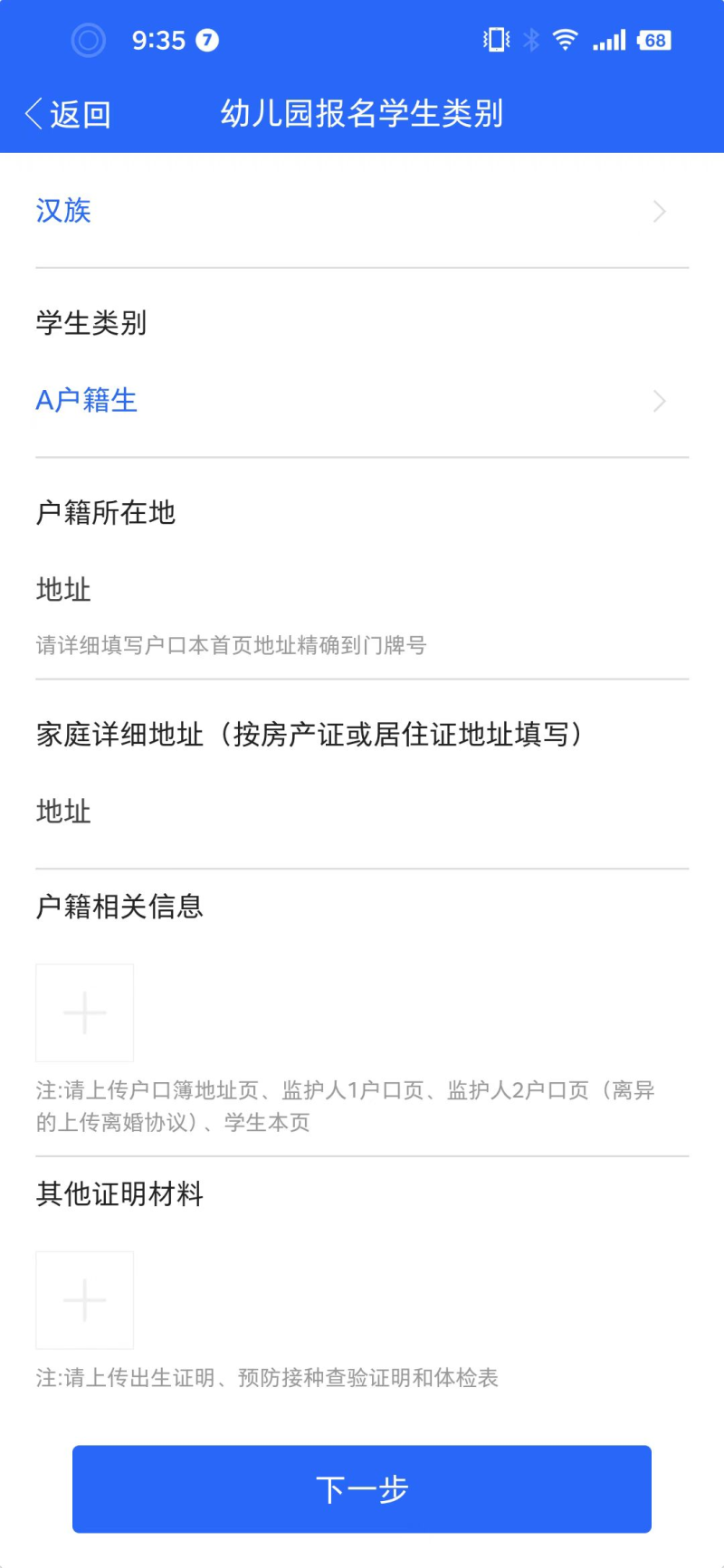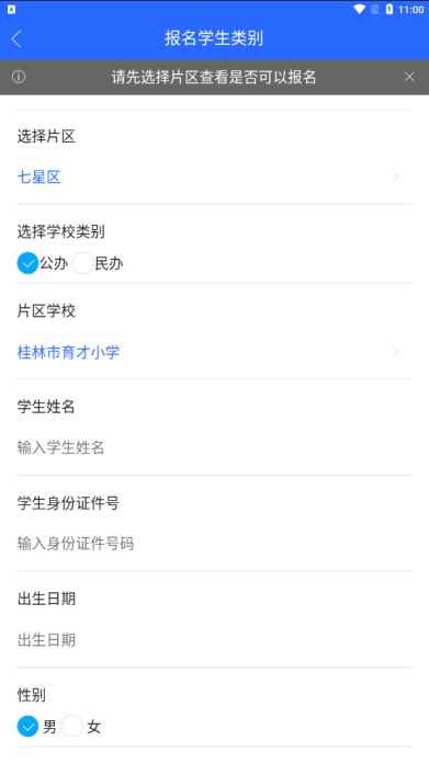 报名的过程中需要输入学生的基本信息(选择所属区域、选择公办或民办、选择学校等),佐证材料,填写监护人信息。