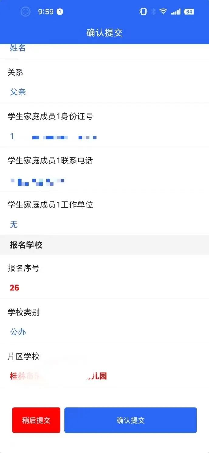 报名信息提交分为两种情况:数据填报和确认提交,当数据没有完全确定时,可以选择稍后提交,此时报名数据尚未提交到片区学校,只有确认提交后,片区学校才能收到学生报名的数据。