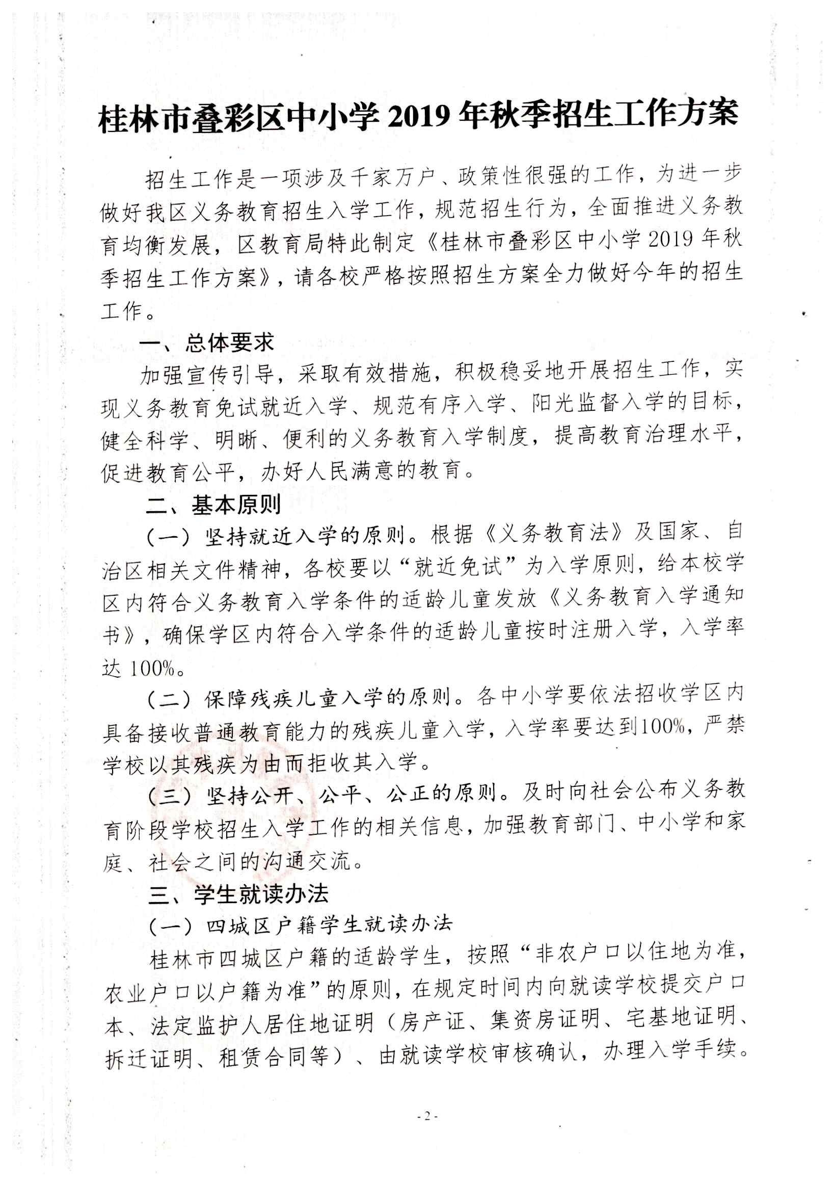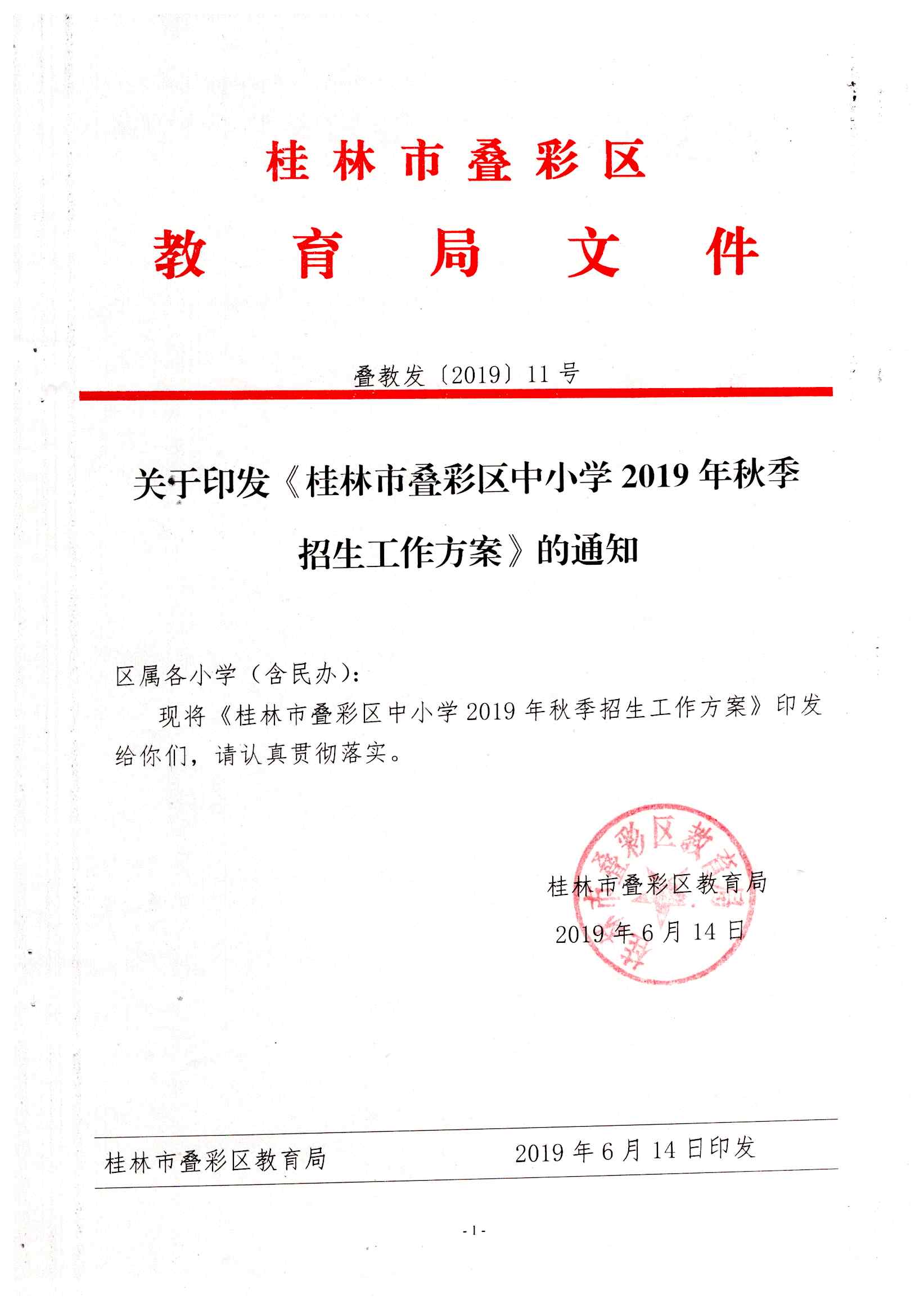 叠教发〔2019〕11号 叠彩区中小学2019年秋季学期招生方案