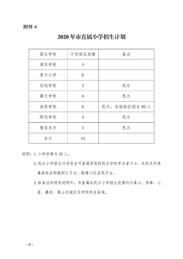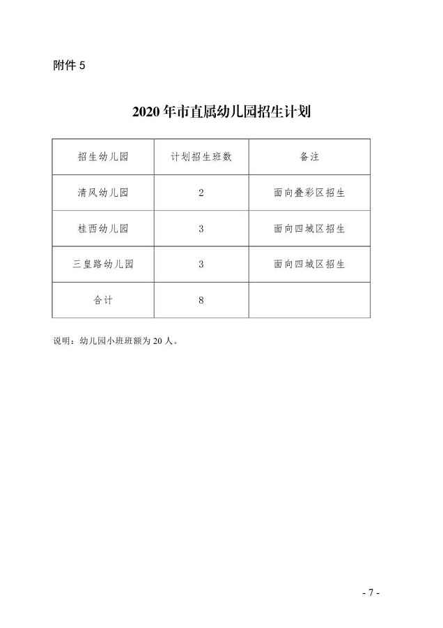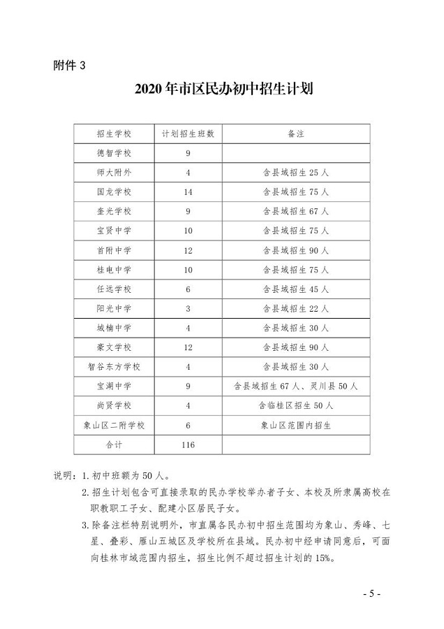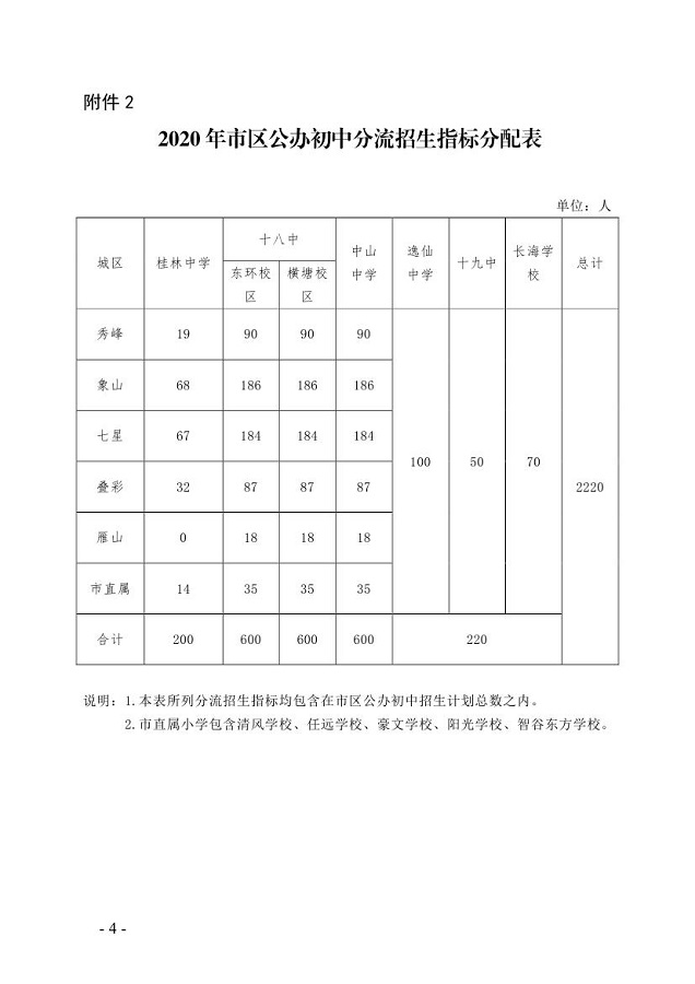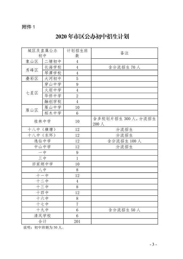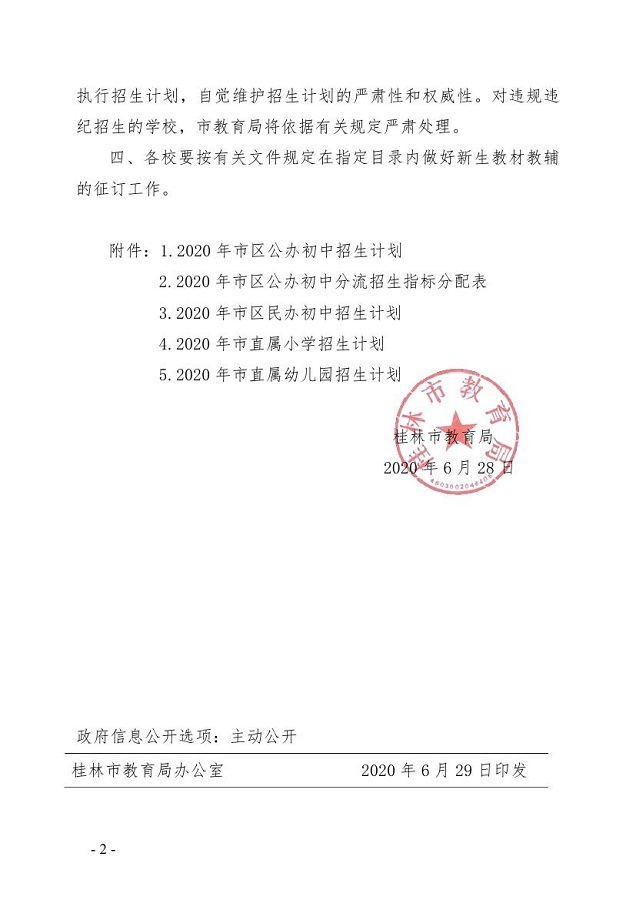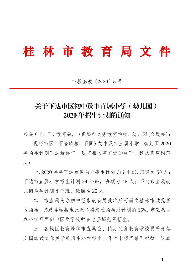 市教基教【2020】5号 桂林市教育局关于下达市区初中及市直属小学(幼儿园)2020年招生计划的通知