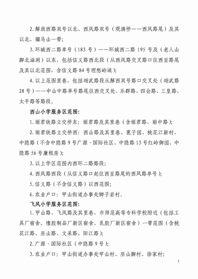 秀峰区属学校服务区范围划分