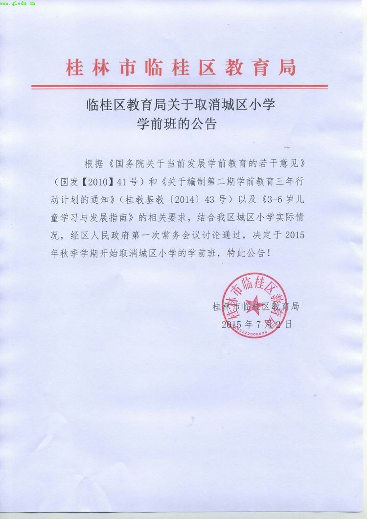 日前,临桂区教育局正式发出通知公告,城区小学由原来的四个学区划分为五个学区,同时城区小学秋季学期彻底取消学前班,意味着临桂教育再次迈出崭新步伐,临桂在努力解决城区小学入学问题和化解大班额问题工作上采取了有力措施。