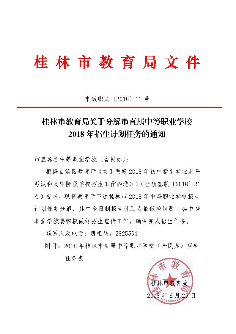 桂林市教育局关于分解市直属中等职业学校2018年招生计划任务的通知_页面_1