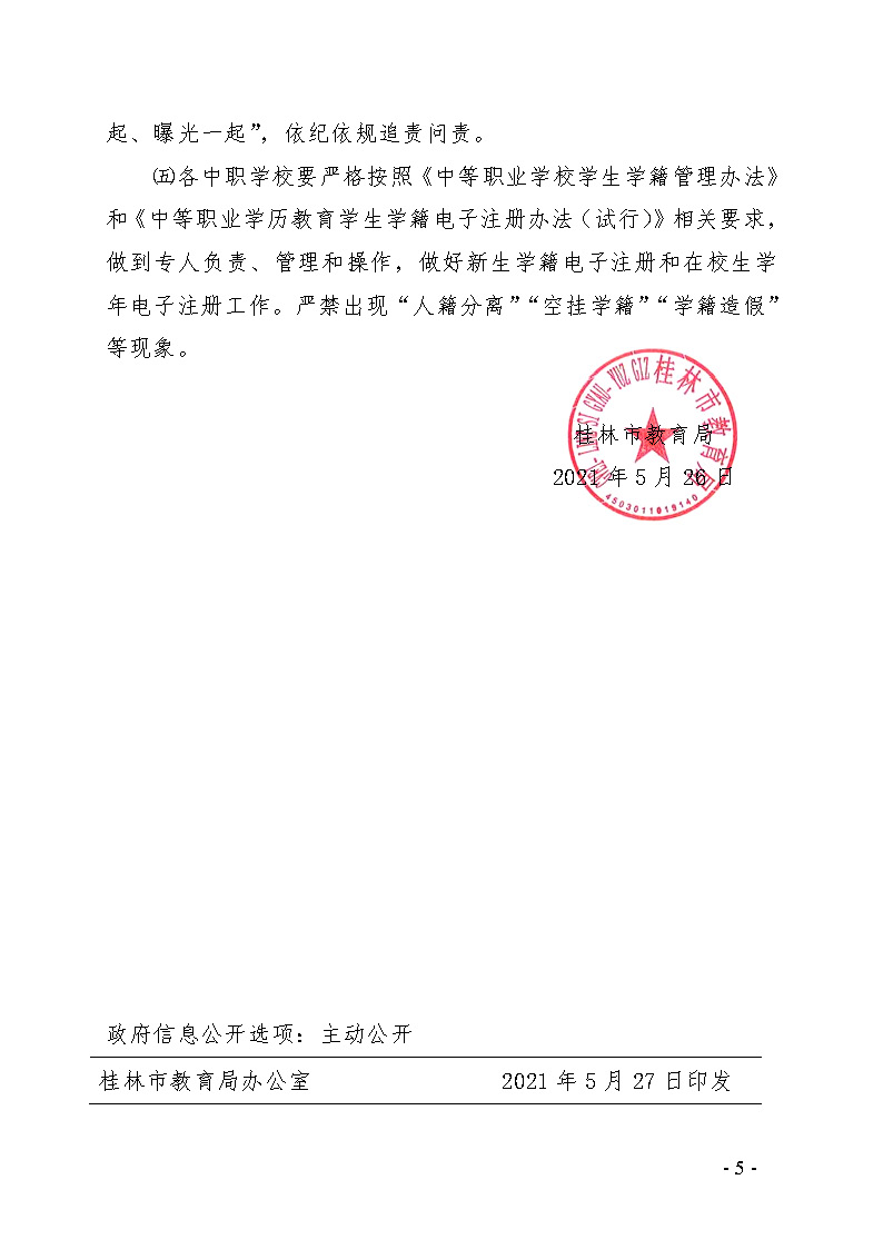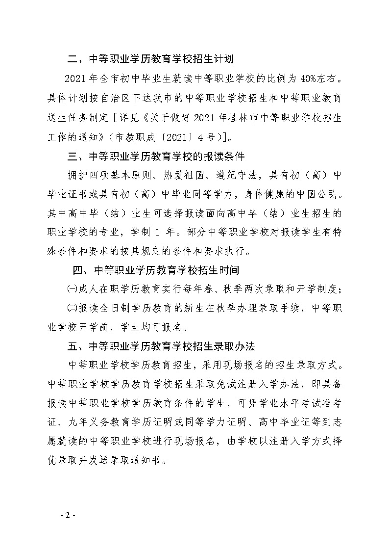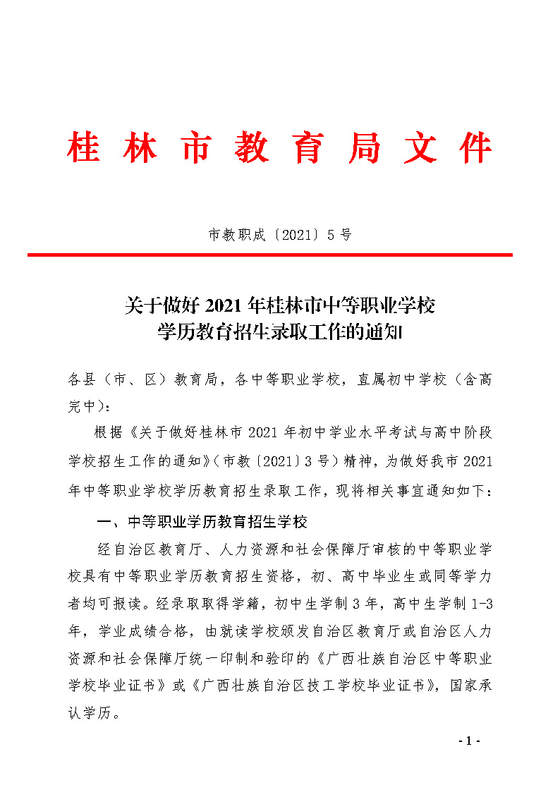 市教职成〔2021〕5号关于做好2021年桂林市中等职业学校学历教育招生录取工作的通知