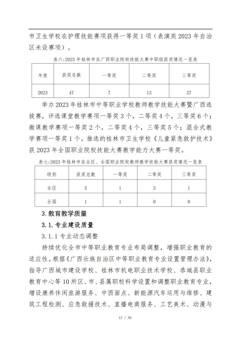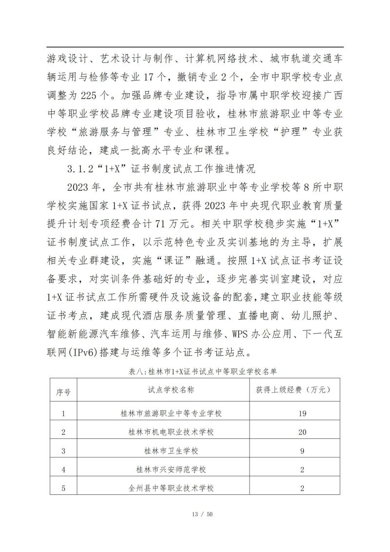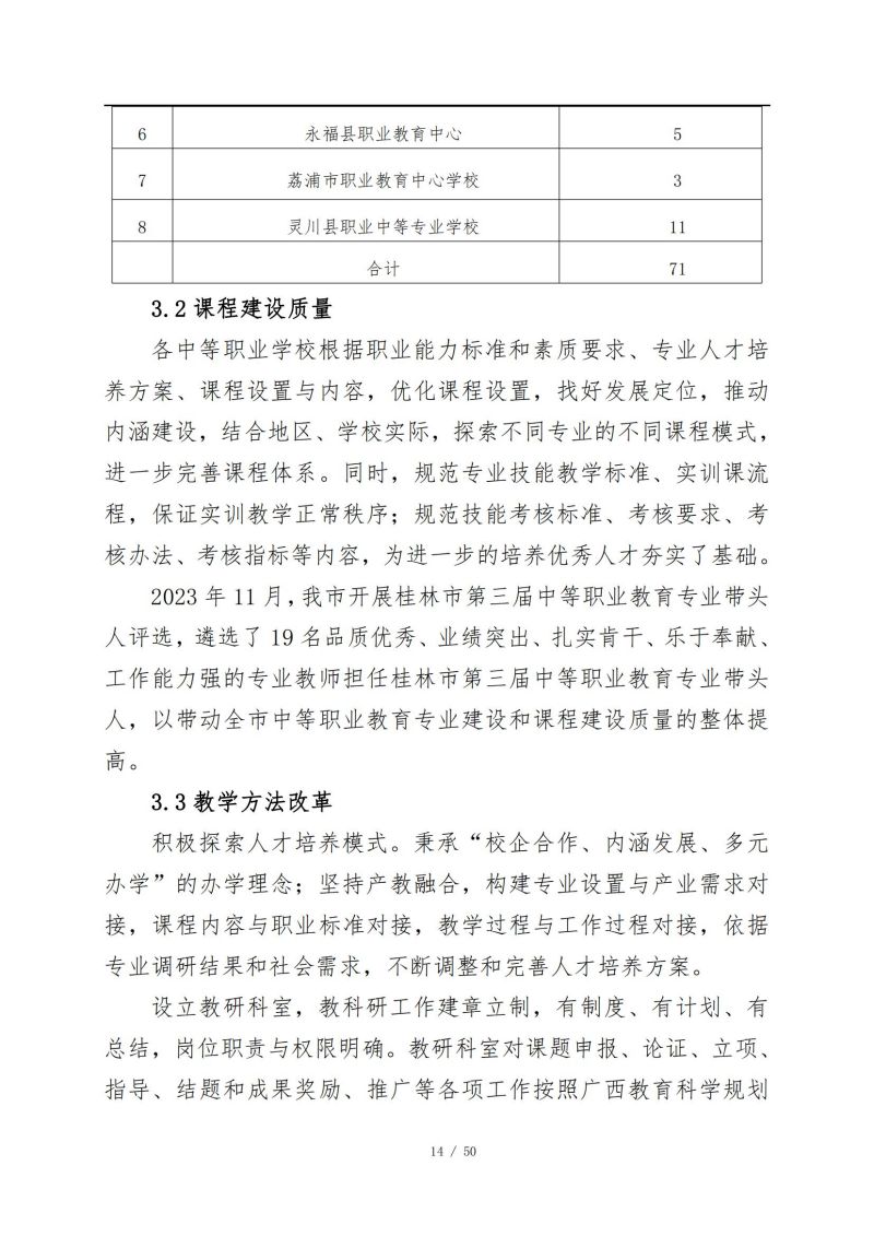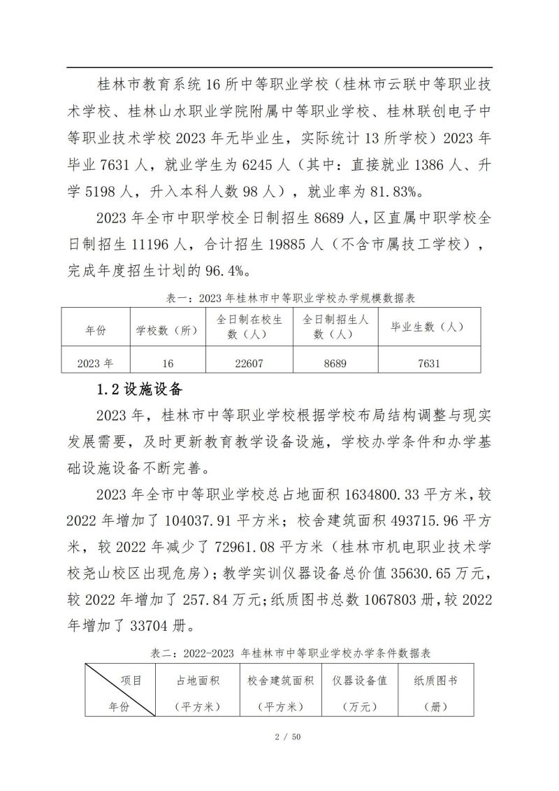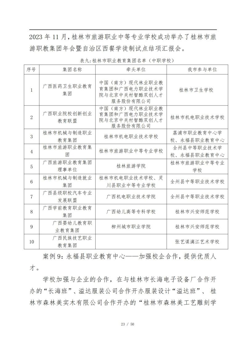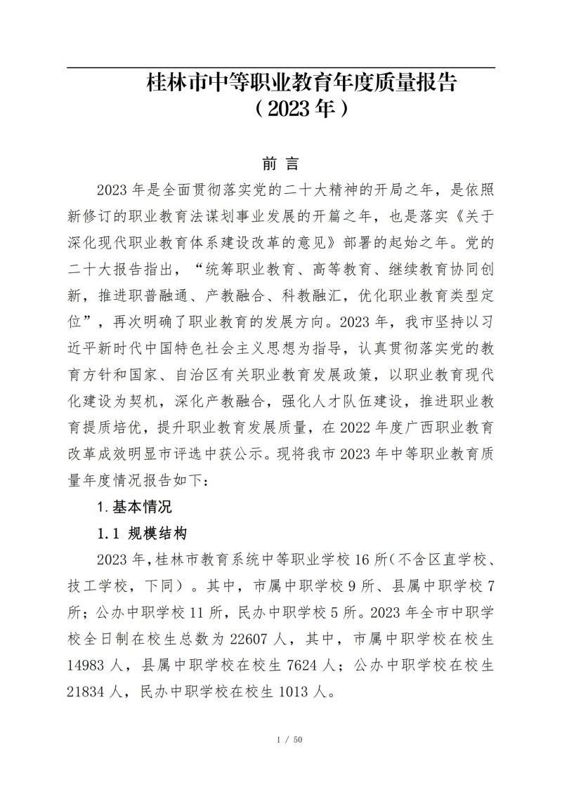 桂林市中等职业教育年度质量报告 (2023年)