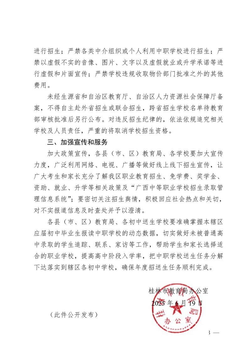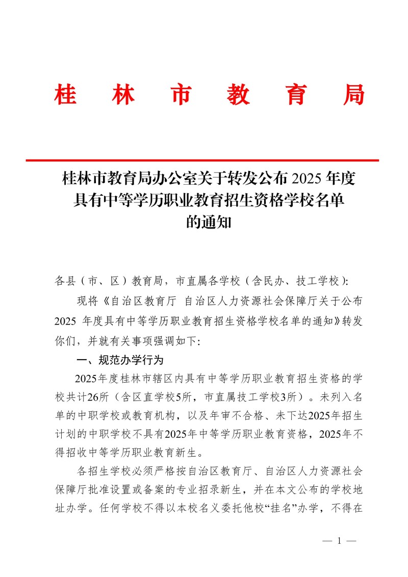 桂林市教育局办公室关于转发公布2025年度具有中等学历职业教育招生资格学校名单的通知