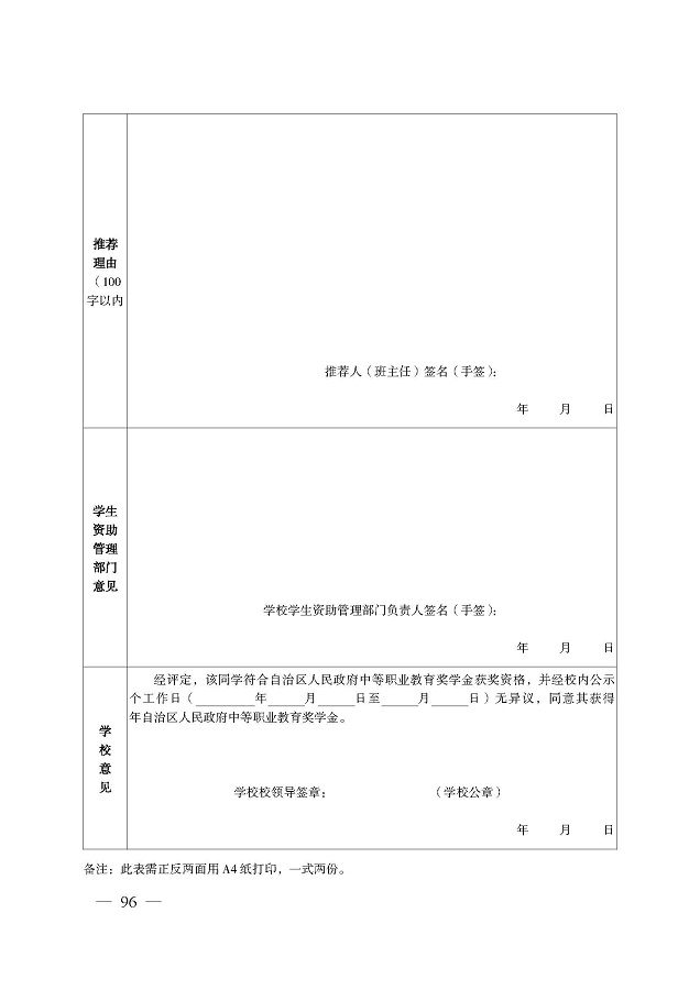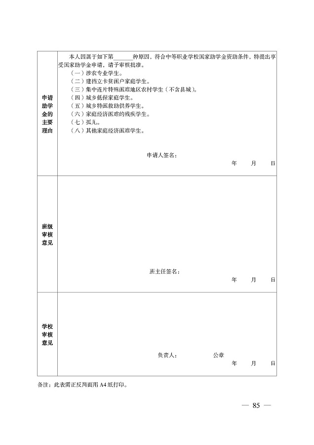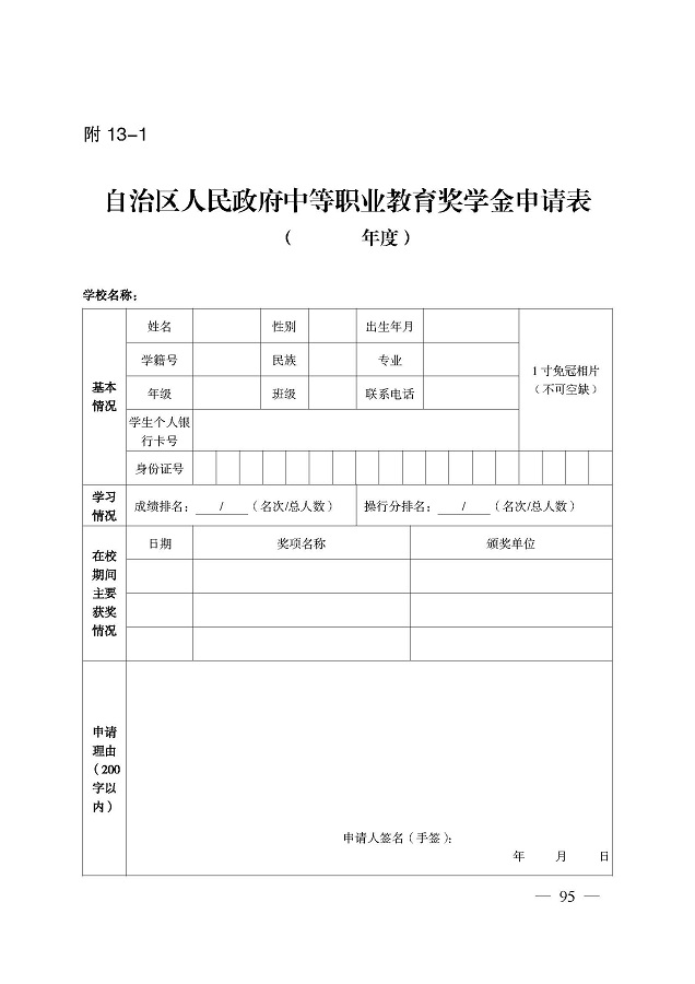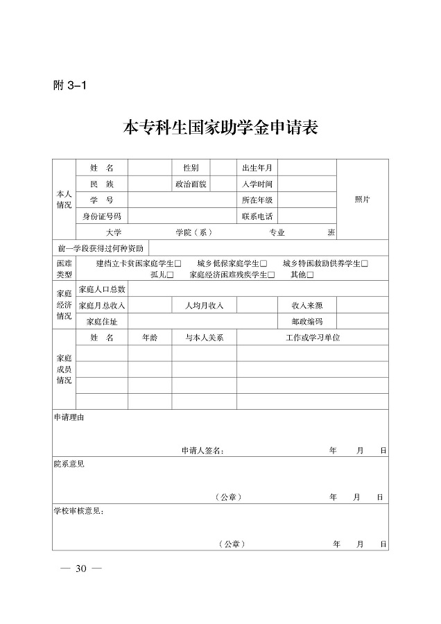 奖助学金申请表下载