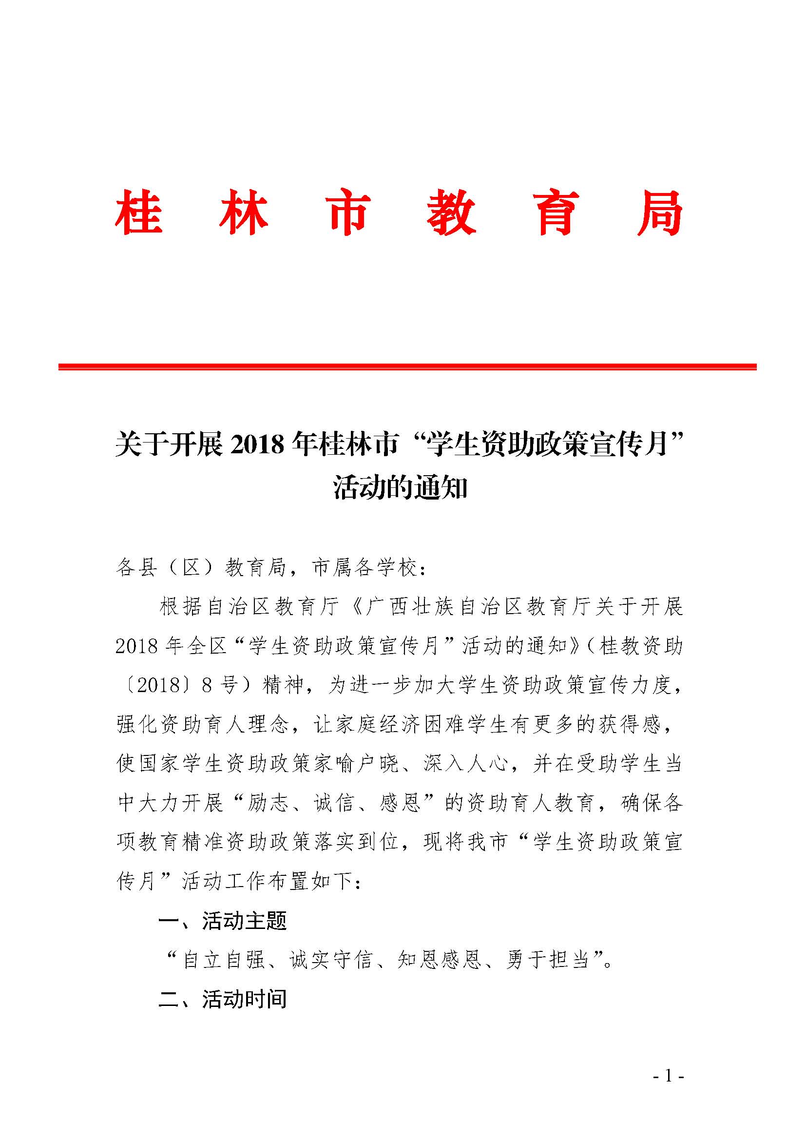 关于开展2018年桂林市“学生资助政策宣传月”活动的通知_页面_1