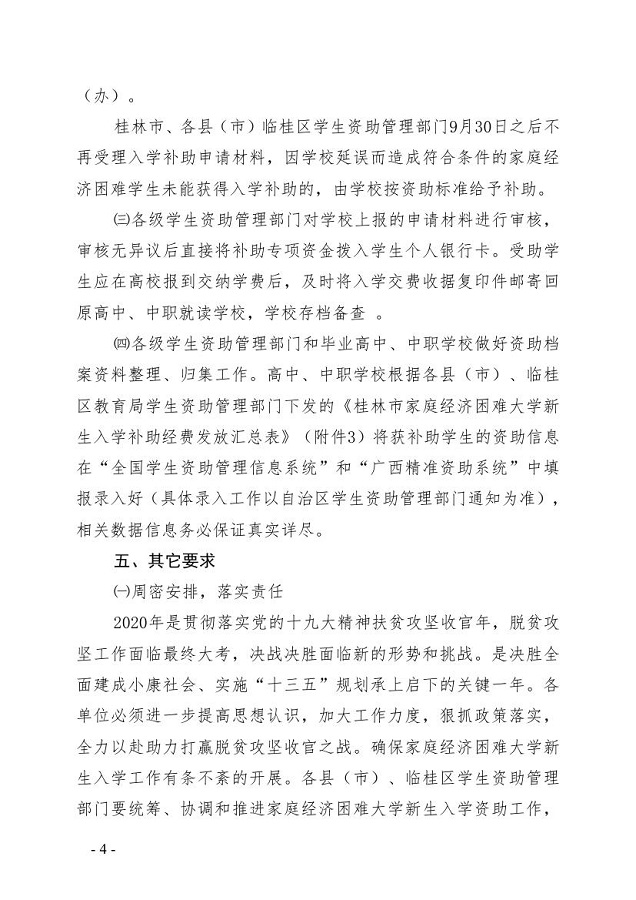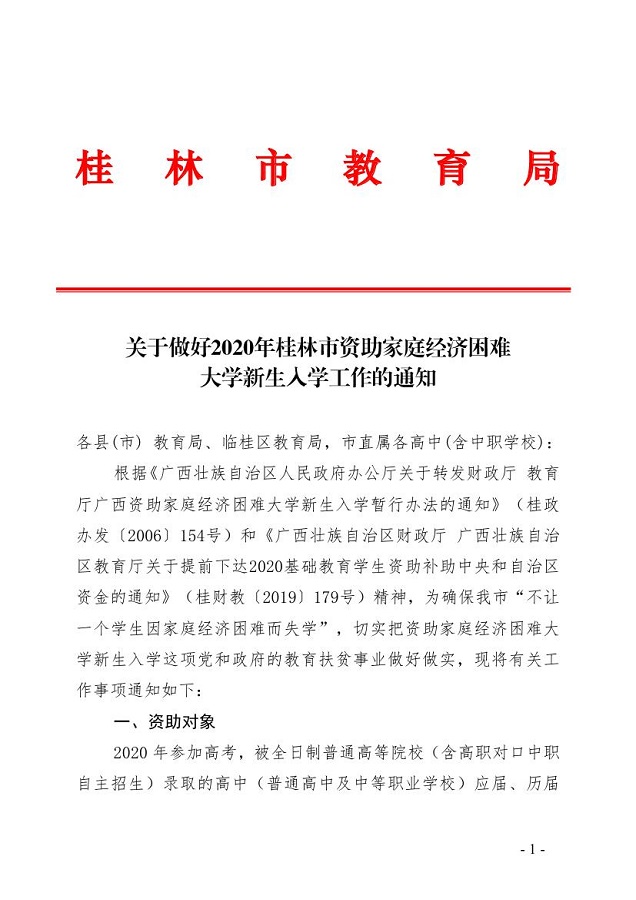 关于做好2020年桂林市资助家庭经济困难大学新生入学工作的通知